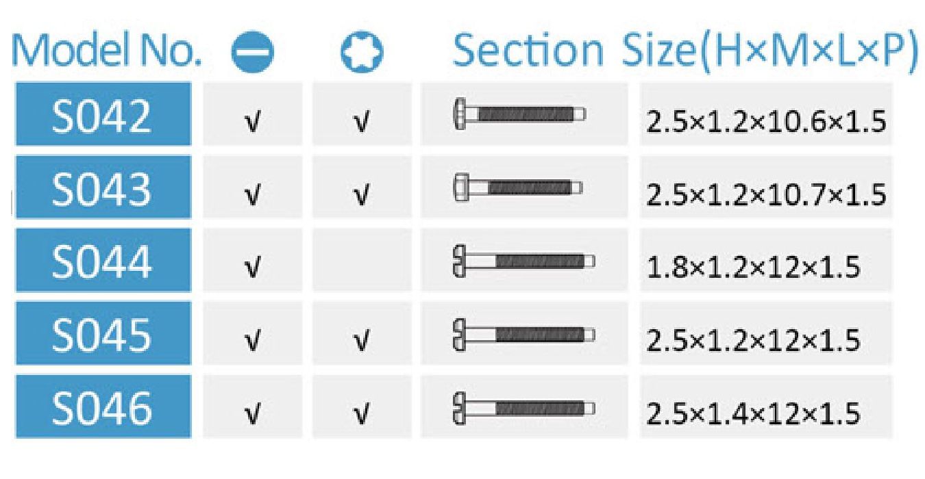 - S042 - 2.5*1.2*10.6*1.5 мм, Torx/шлиц