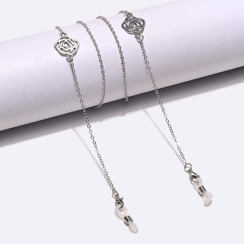 Металлическая нескользящая цепочка серебряного цвета, c цветком розы, для очков и масок GL062