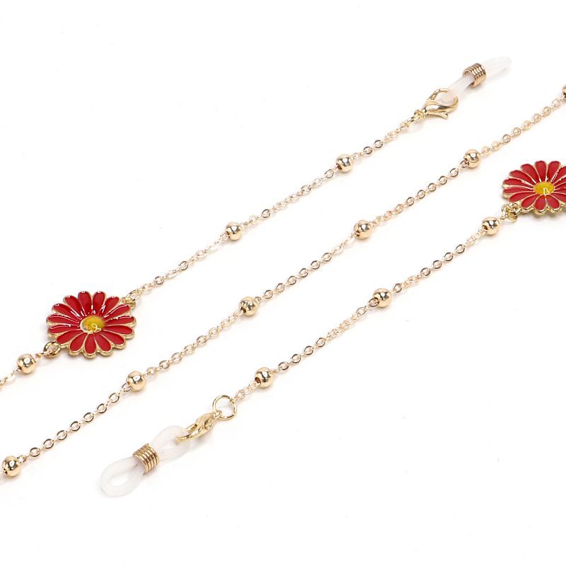 Металлическая нескользящая цепочка золотого цвета, с красной ромашкой, для очков и масок GL1031