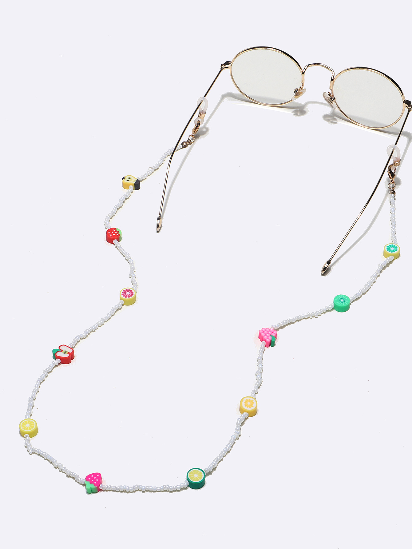 Белая цепочка для очков из рисовых бусин с глиняными фруктами GL1288