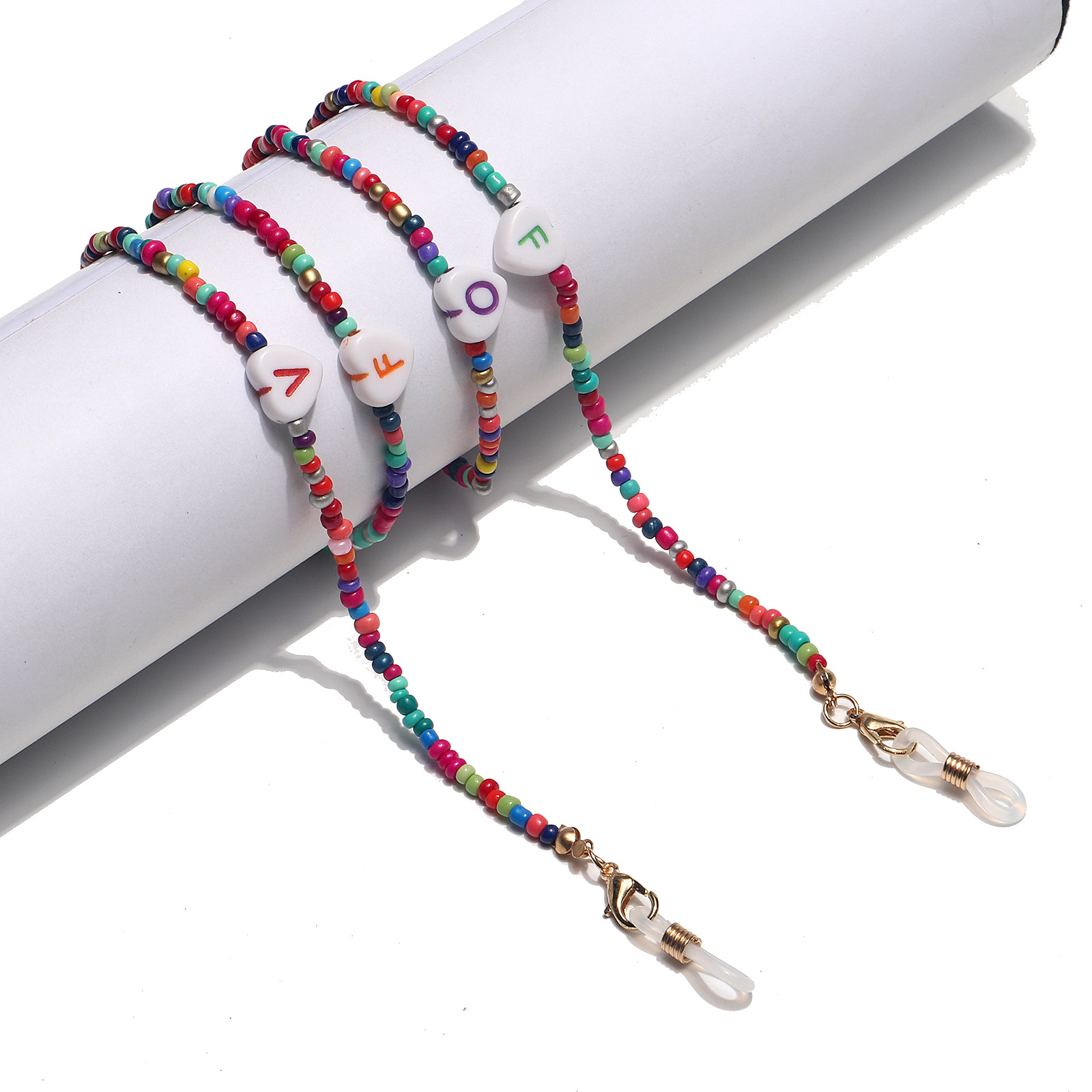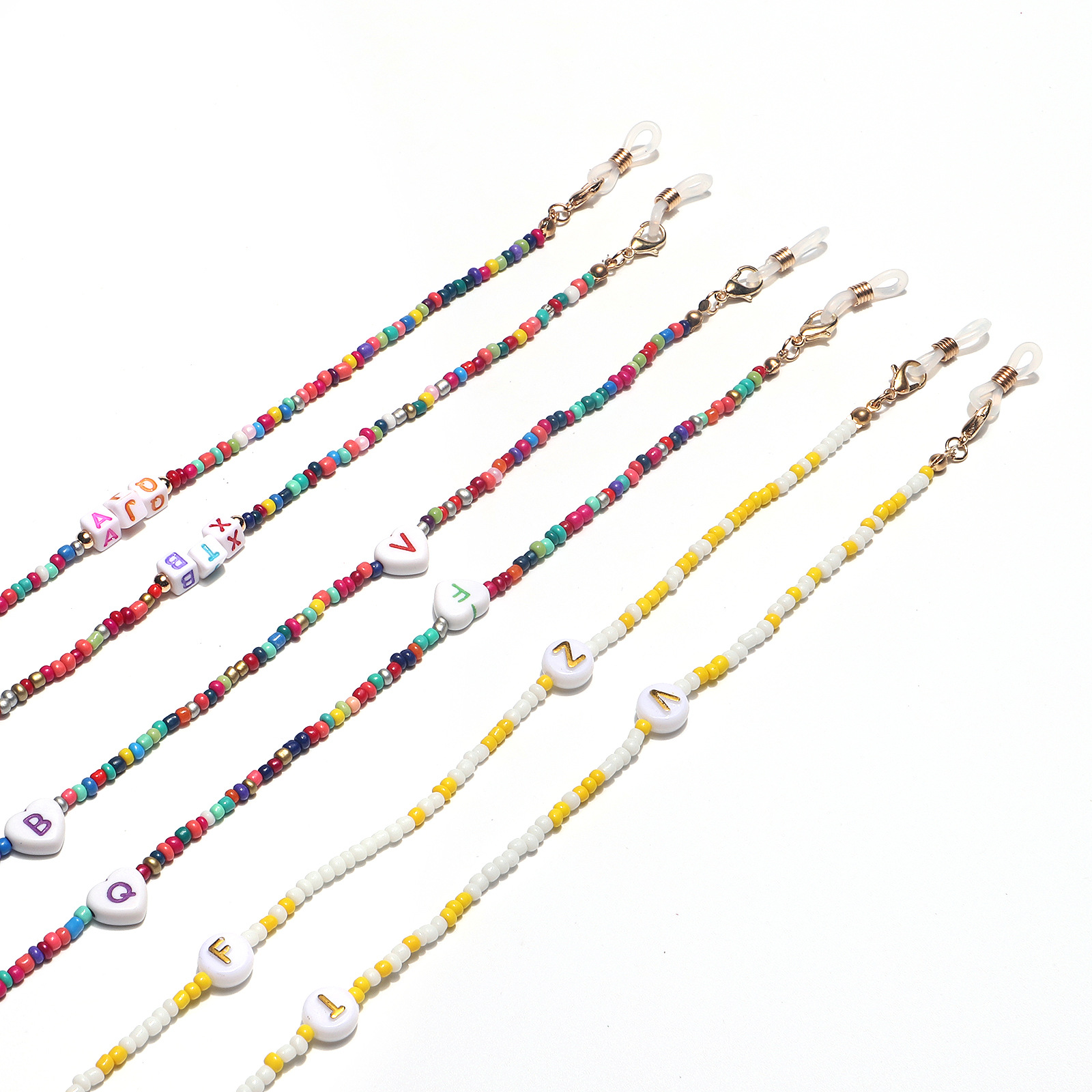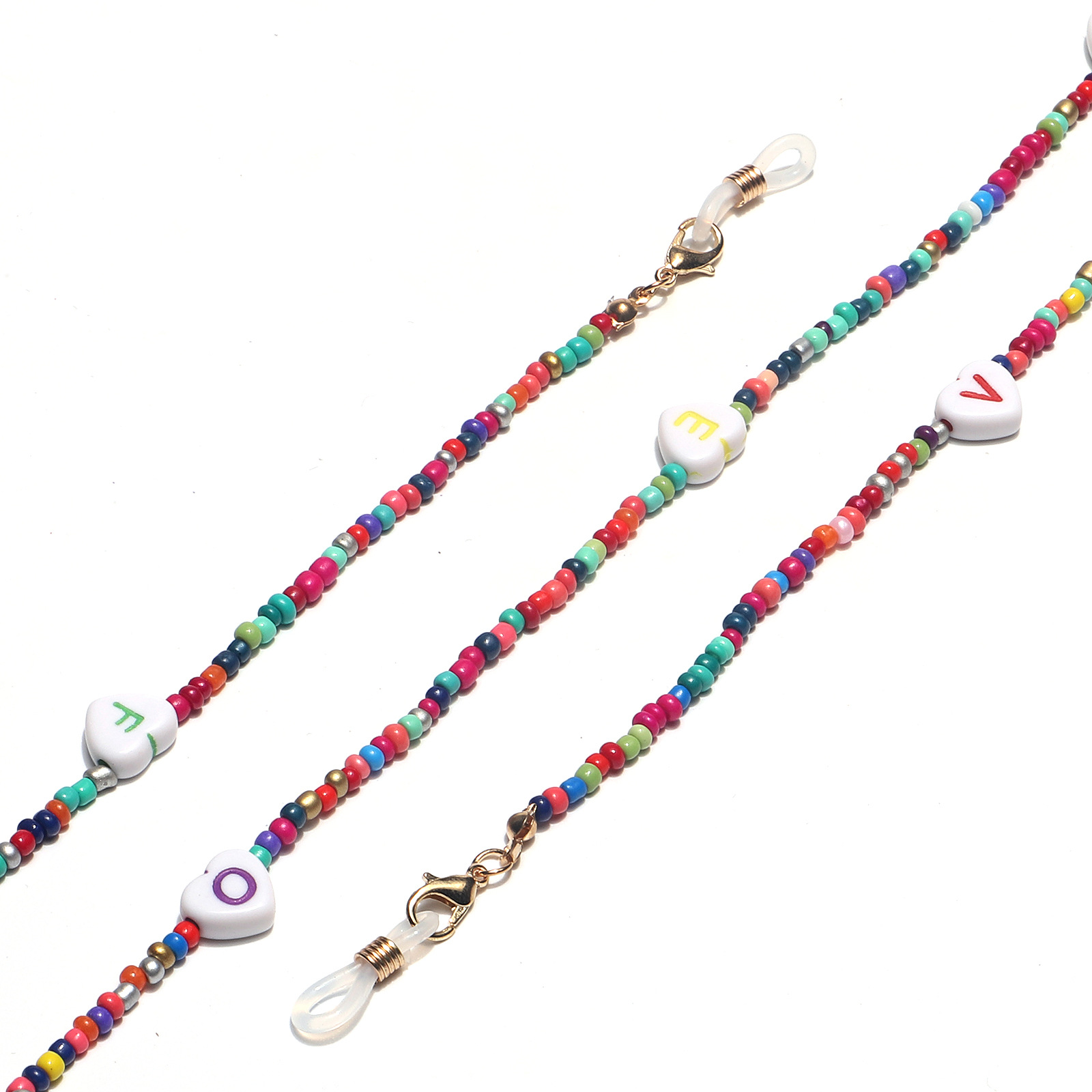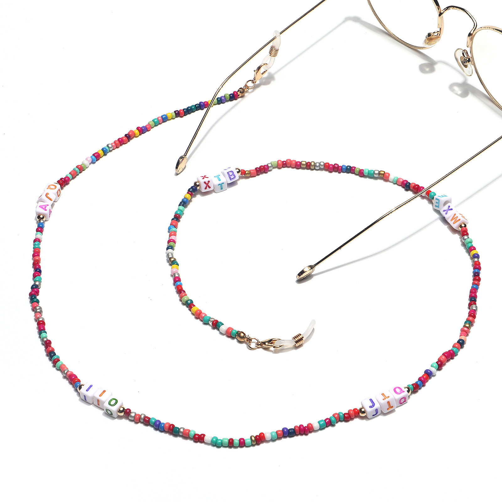 Разноцветная цепочка для очков из рисовых бусинок с буквами GL1373