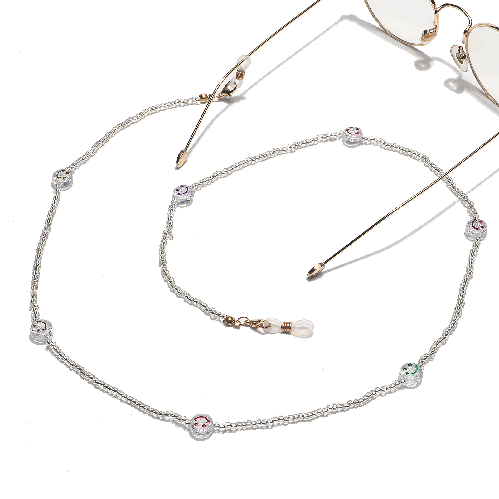 Модная цепочка для очков с разноцветными рисовыми бусинами и смайликами GL1375