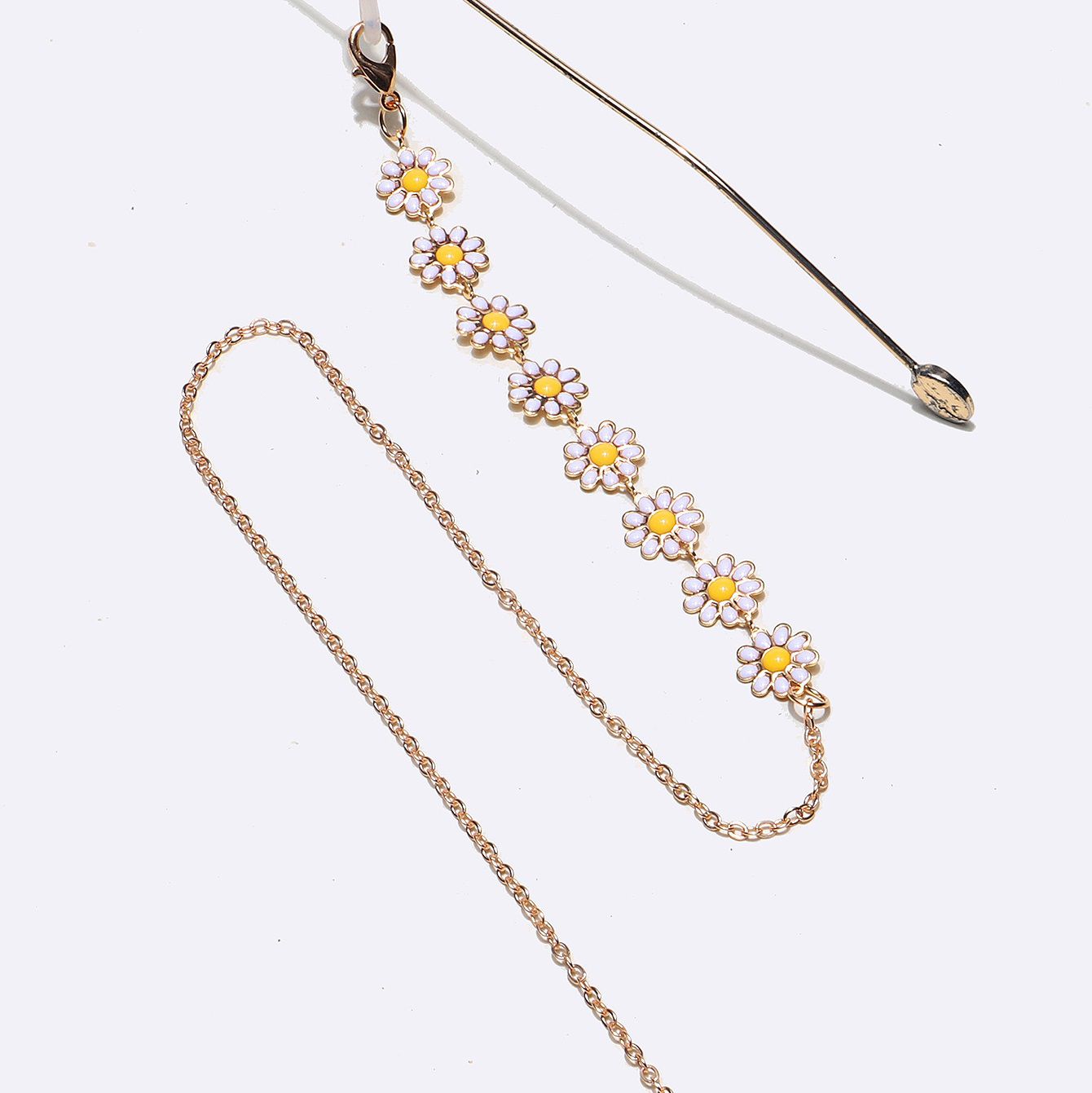 Металлическая нескользящая цепочка золотого цвета, с ромашкой, для очков и масок GL1391