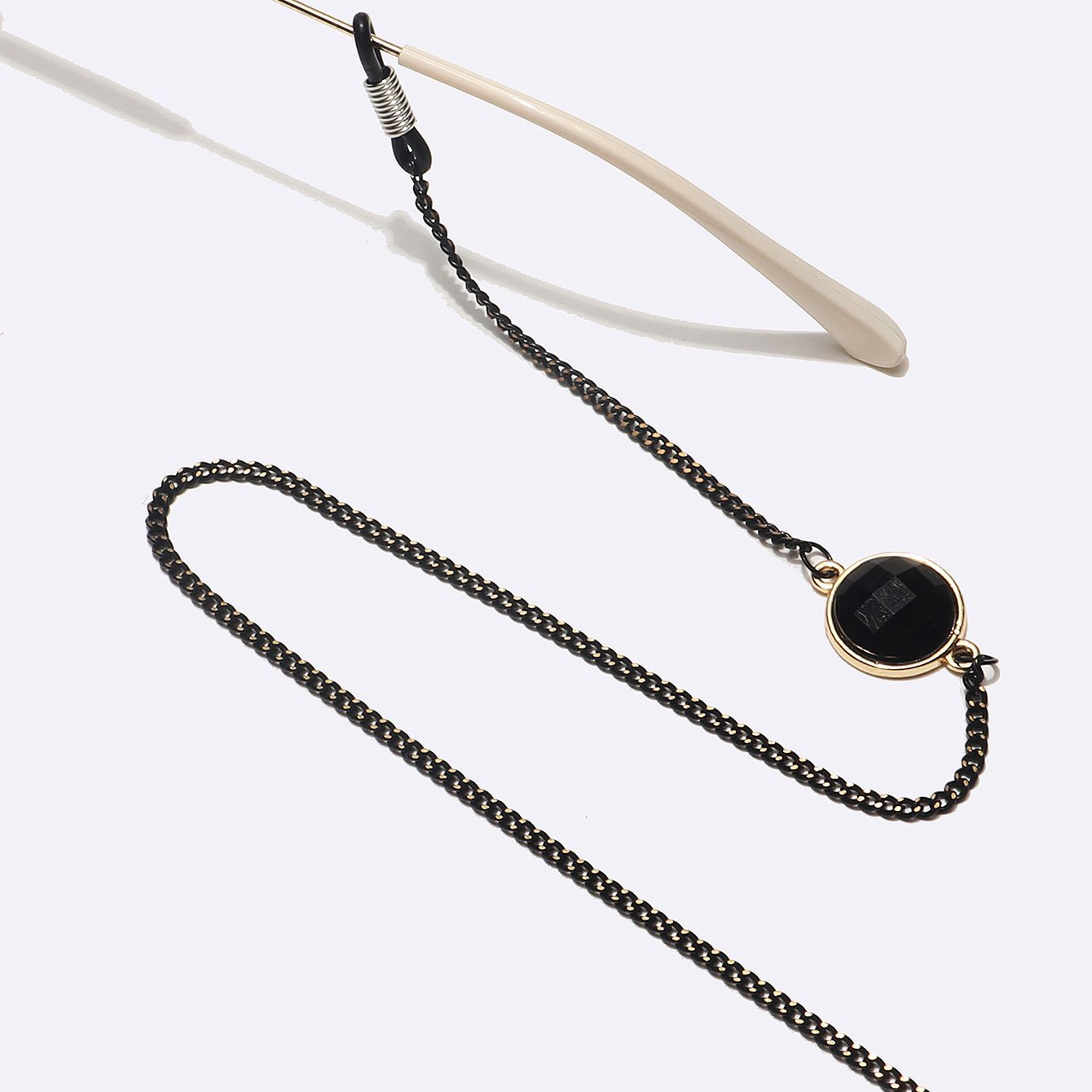 Металлическая нескользящая цепочка черного цвета, с черным кристаллом , для очков и масок GL1499