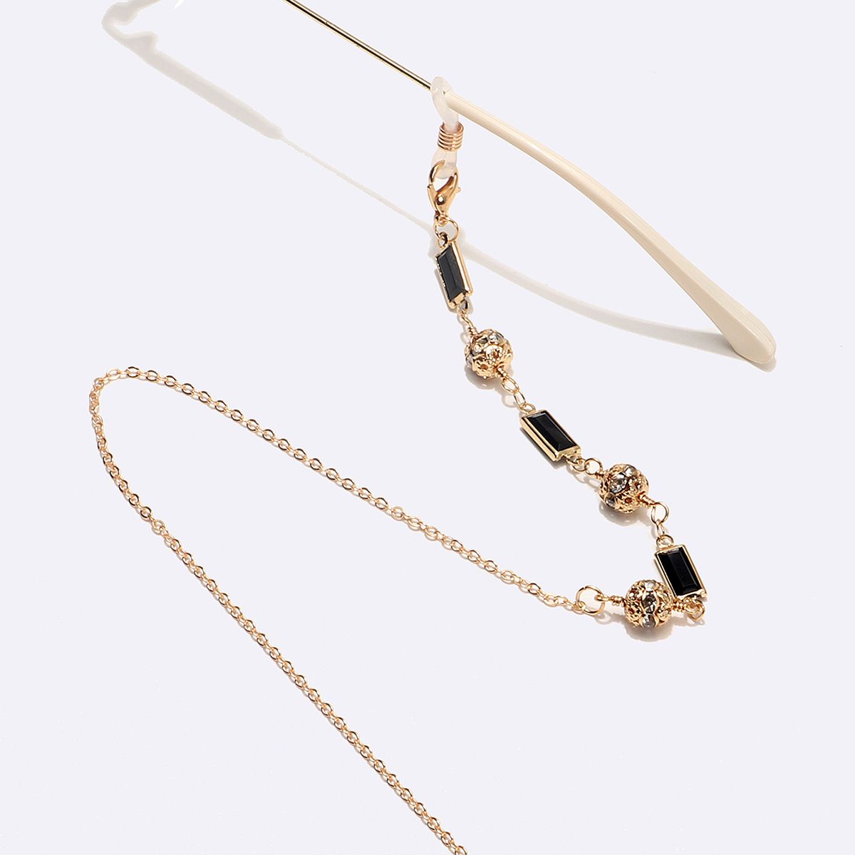 Металлическая нескользящая цепочка золотого цвета, с черным квадратом и бусинами со стразами, для очков и масок GL1527