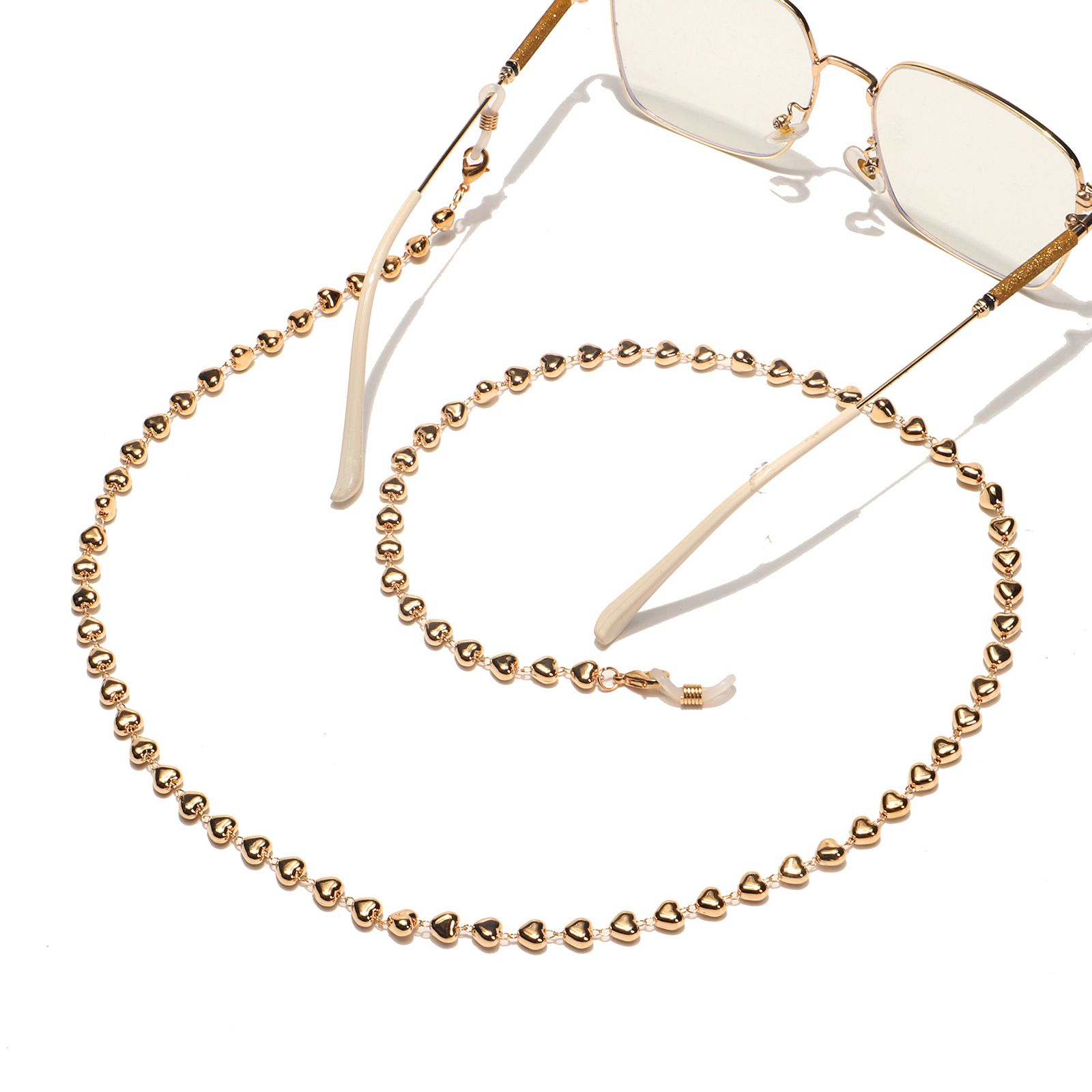Металлическая нескользящая цепочка золотого цвета, с золотыми сердцами, для очков и масок GL1555