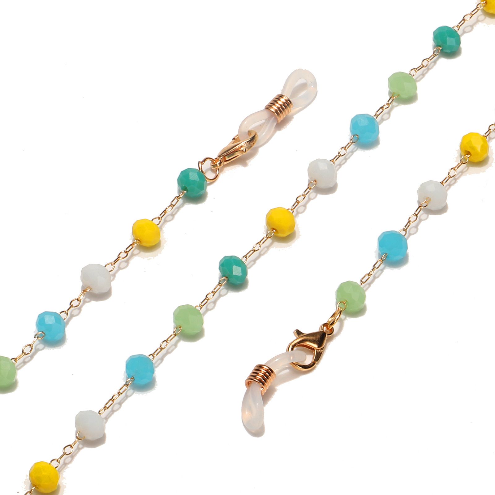Металлическая нескользящая цепочка золотого цвета, с цветными кристаллами, для очков и масок GL1574