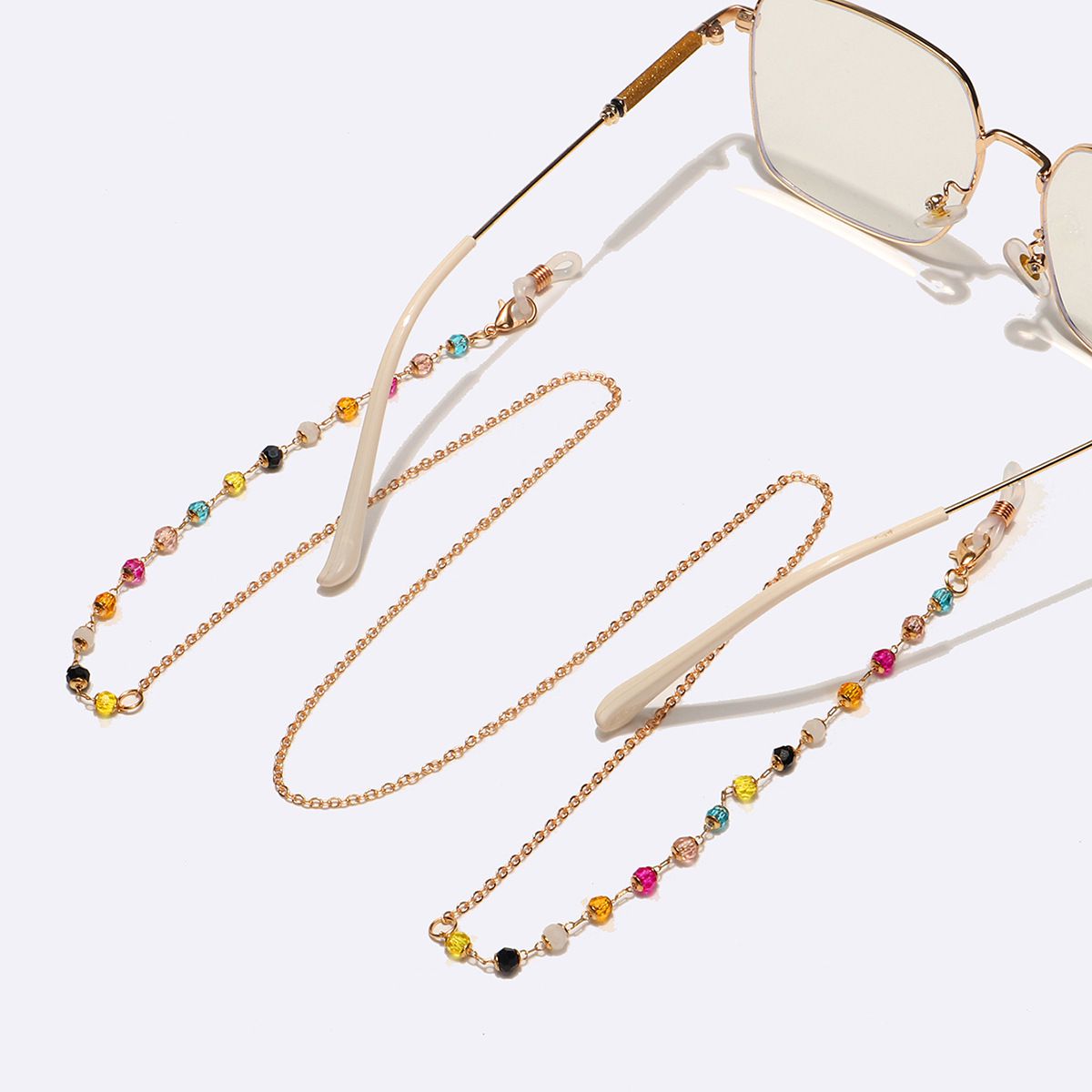 Металлическая нескользящая цепочка золотого цвета, с цветными кристаллами, для очков и масок GL1579