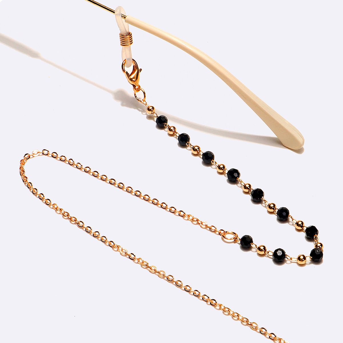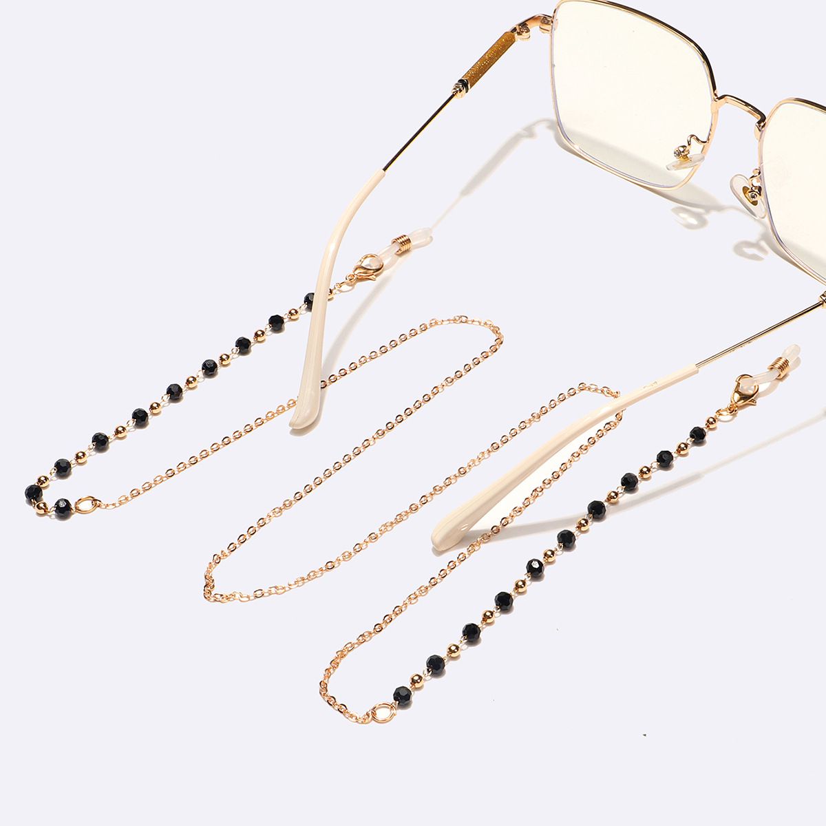 Металлическая нескользящая цепочка золотого цвета, с черными кристаллами, для очков и масок GL1587