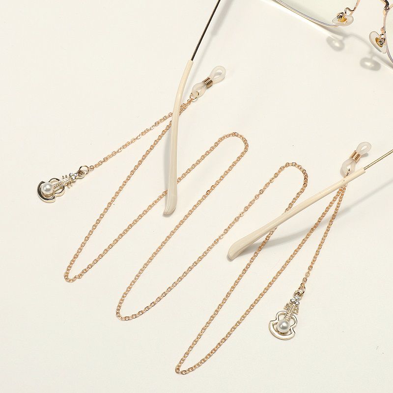 Металлическая нескользящая цепочка золотого цвета, c гитарой и жемчугом, для очков и масок GL1843