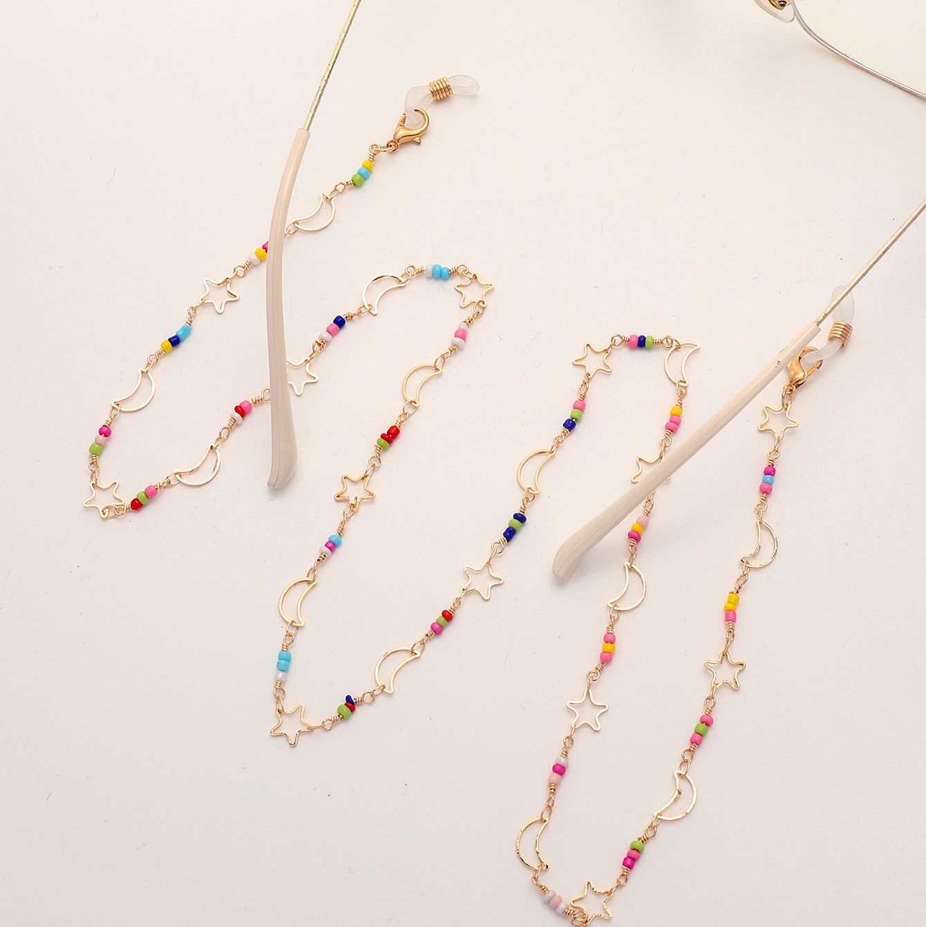 Металлическая нескользящая цепочка золотого цвета, с цветными бусинами и полыми звездой и луной, для очков и масок GL1851