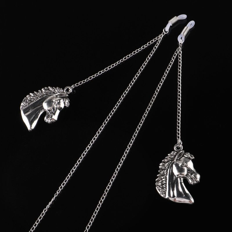 Металлическая нескользящая цепочка серебряного цвета, с подвеской в виде лошади, для очков и масок GL208