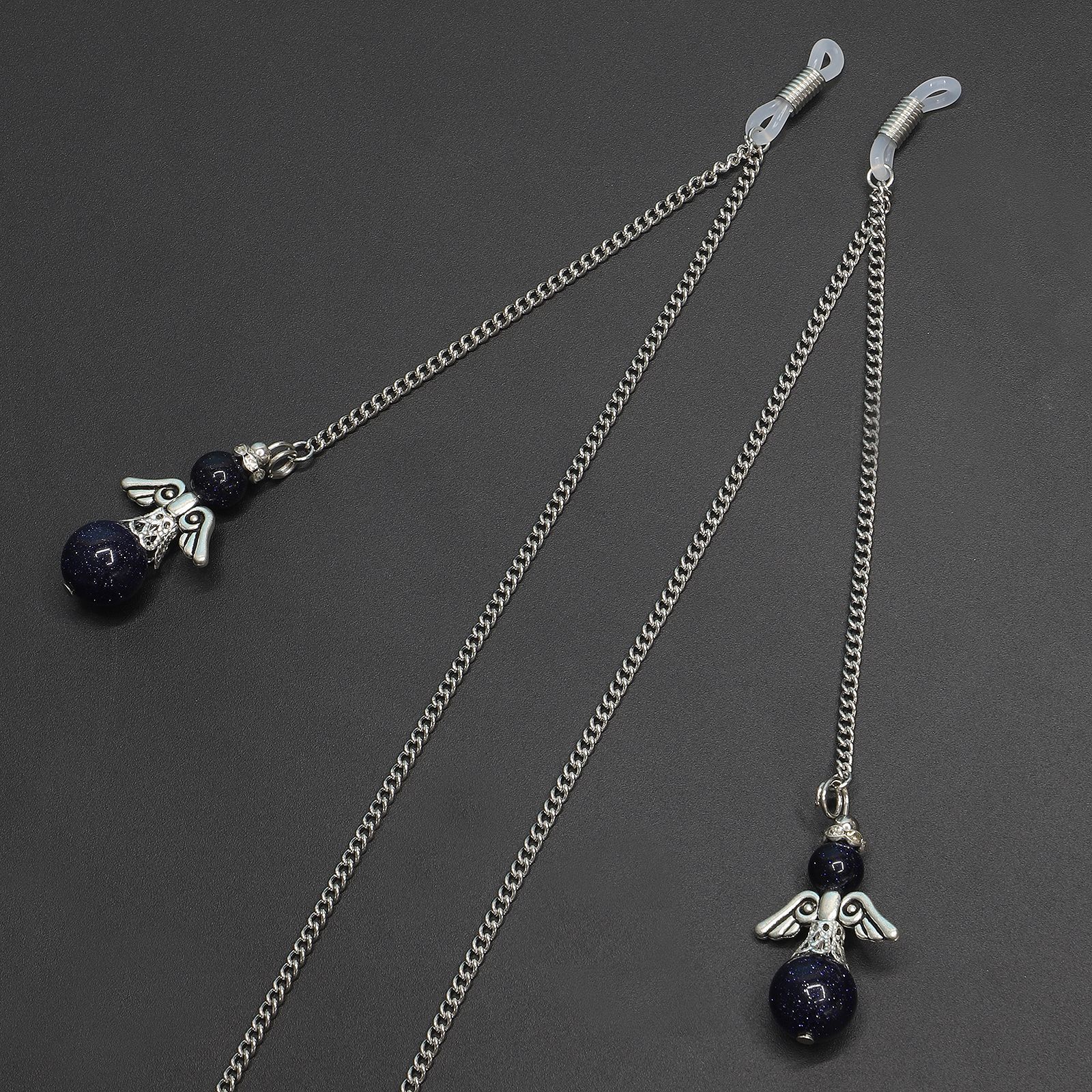 Металлическая нескользящая цепочка серебряного цвета, с черным натуральным камнем, для очков и масок GL272