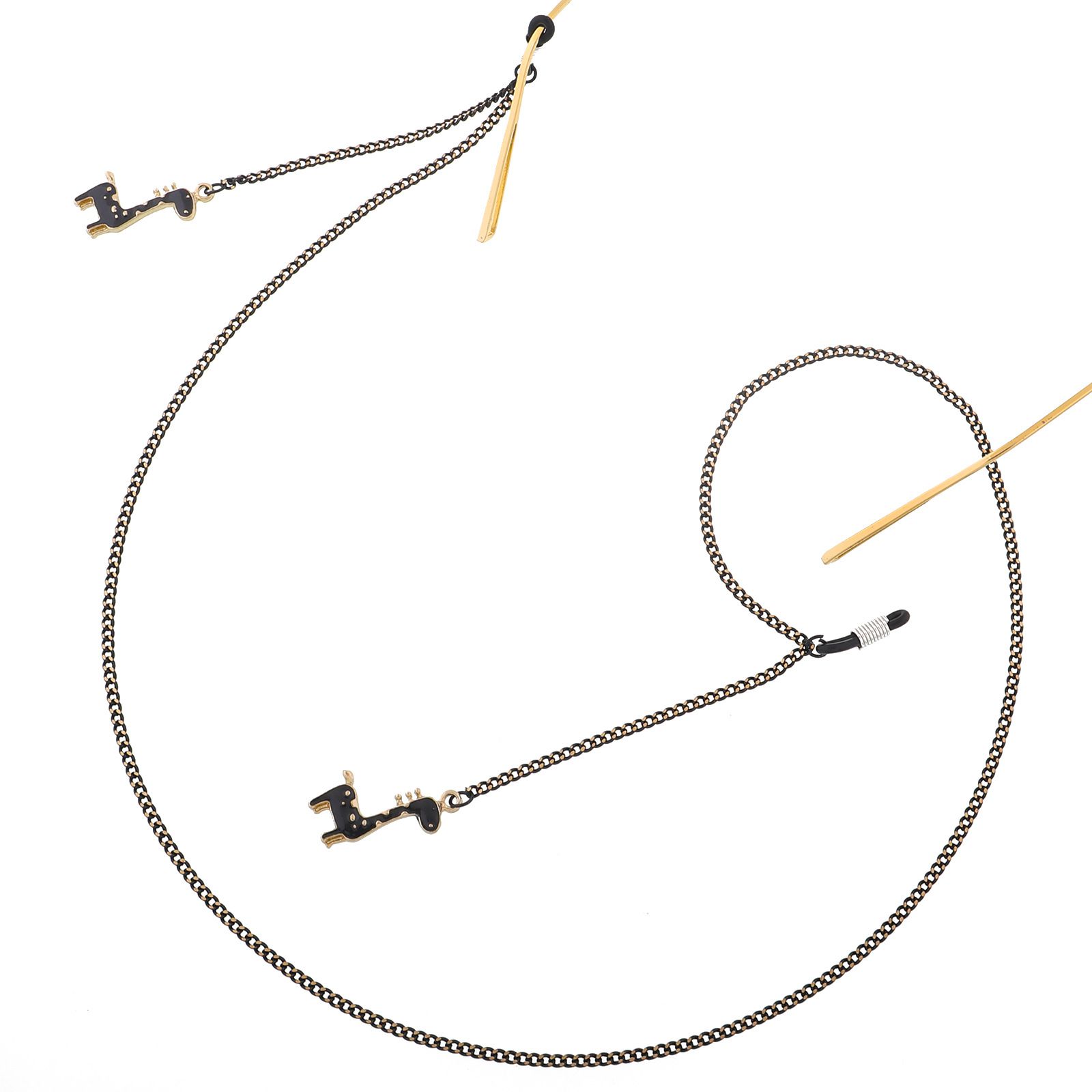 Металлическая нескользящая цепочка черного цвета, с подвеской в виде черного жирафа, для очков и масок GL362