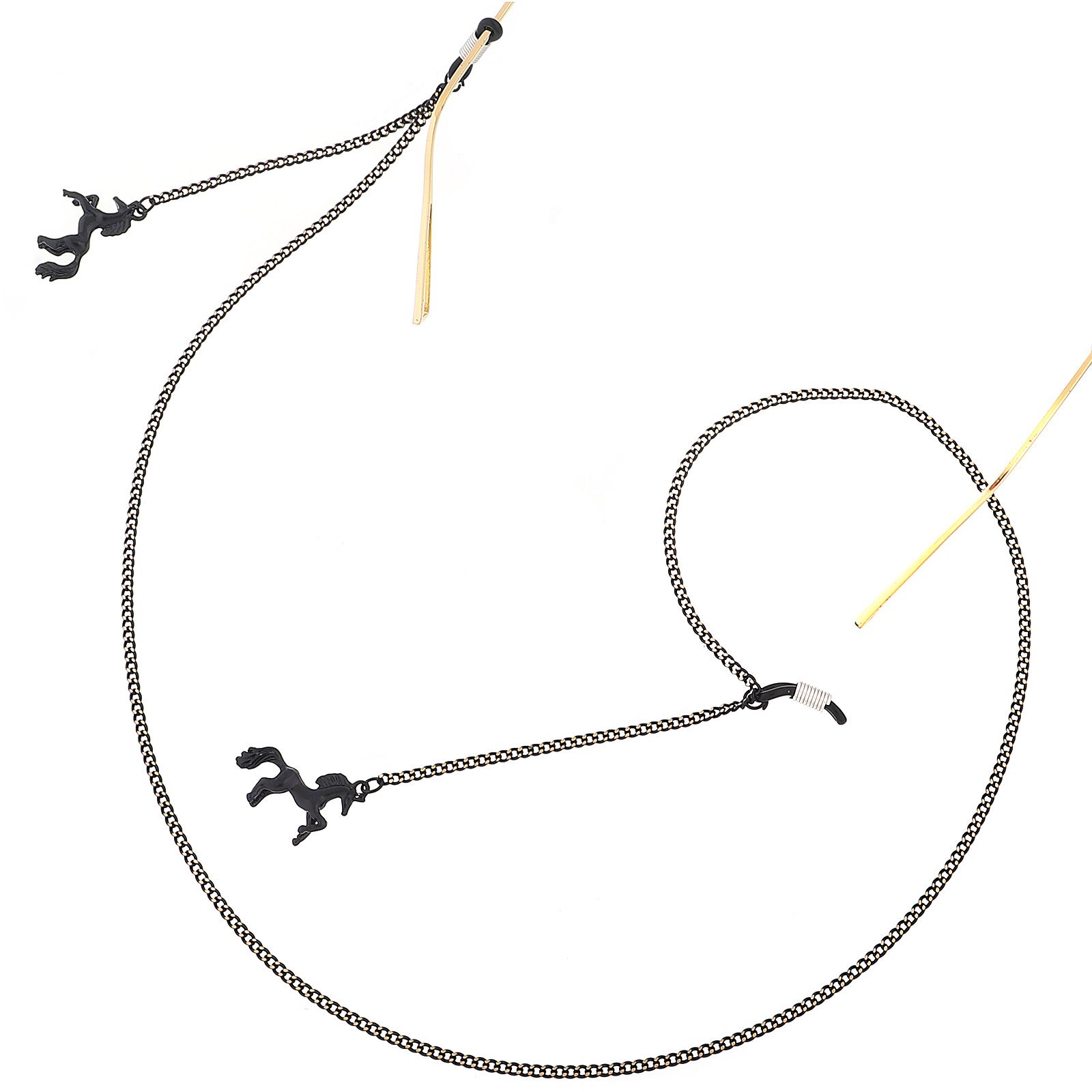 Металлическая нескользящая цепочка черного цвета, с подвеской в виде лошади, для очков и масок GL367