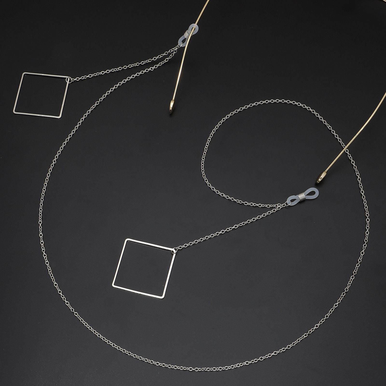 Металлическая нескользящая цепочка, с подвеской в виде квадрата, для очков и масок GL380