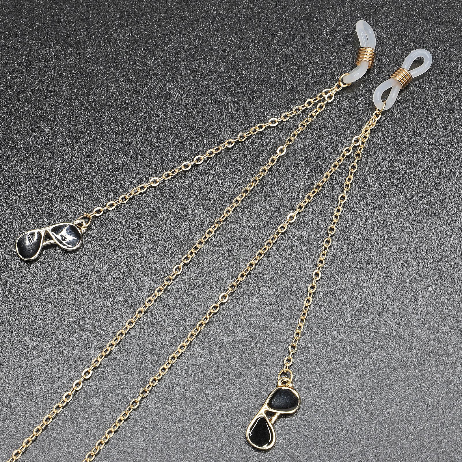 Металлическая нескользящая цепочка золотого цвета, с подвеской черные очки, для очков и масок GL399