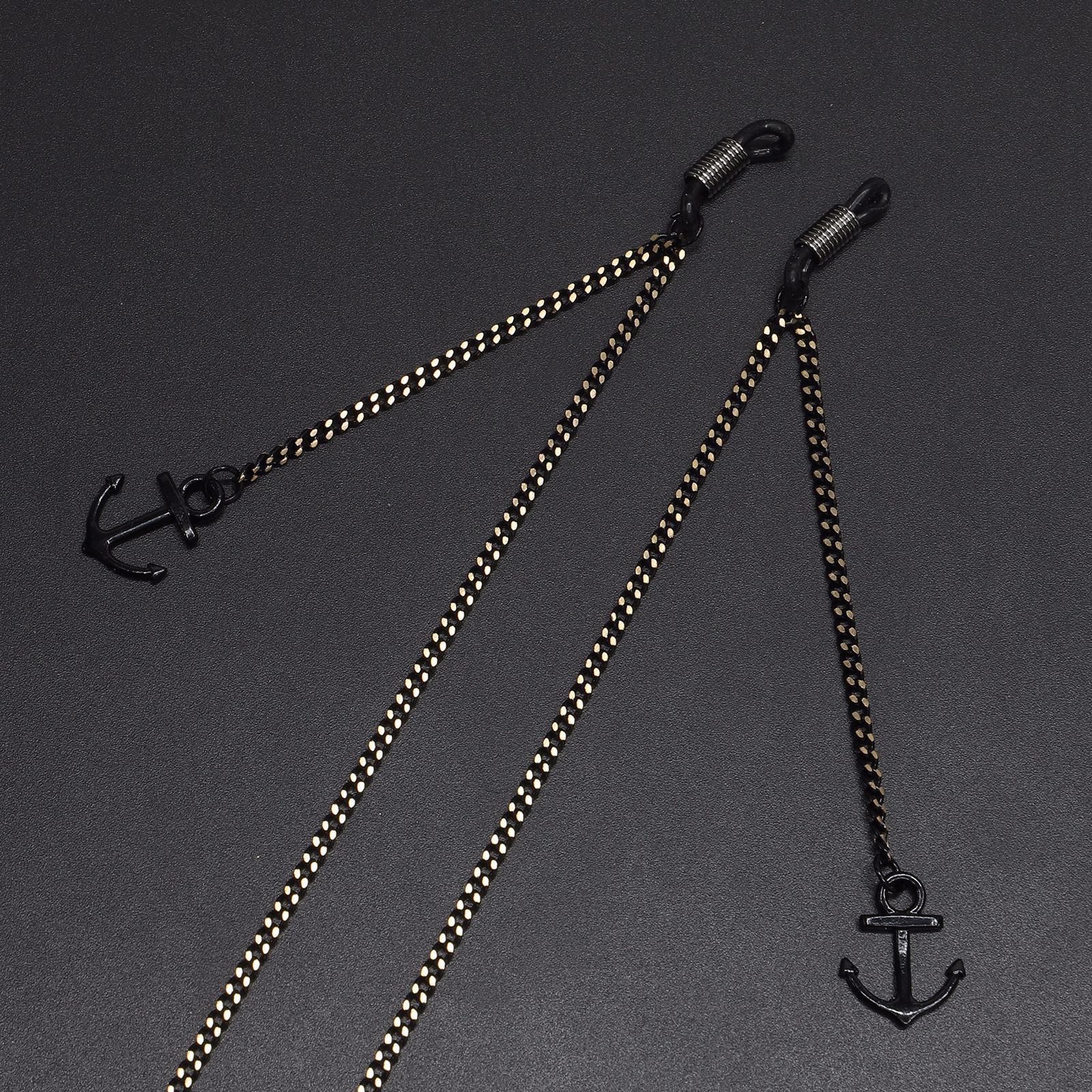 Металлическая нескользящая цепочка черного цвета, с подвеской в виде якоря, для очков и масок GL494