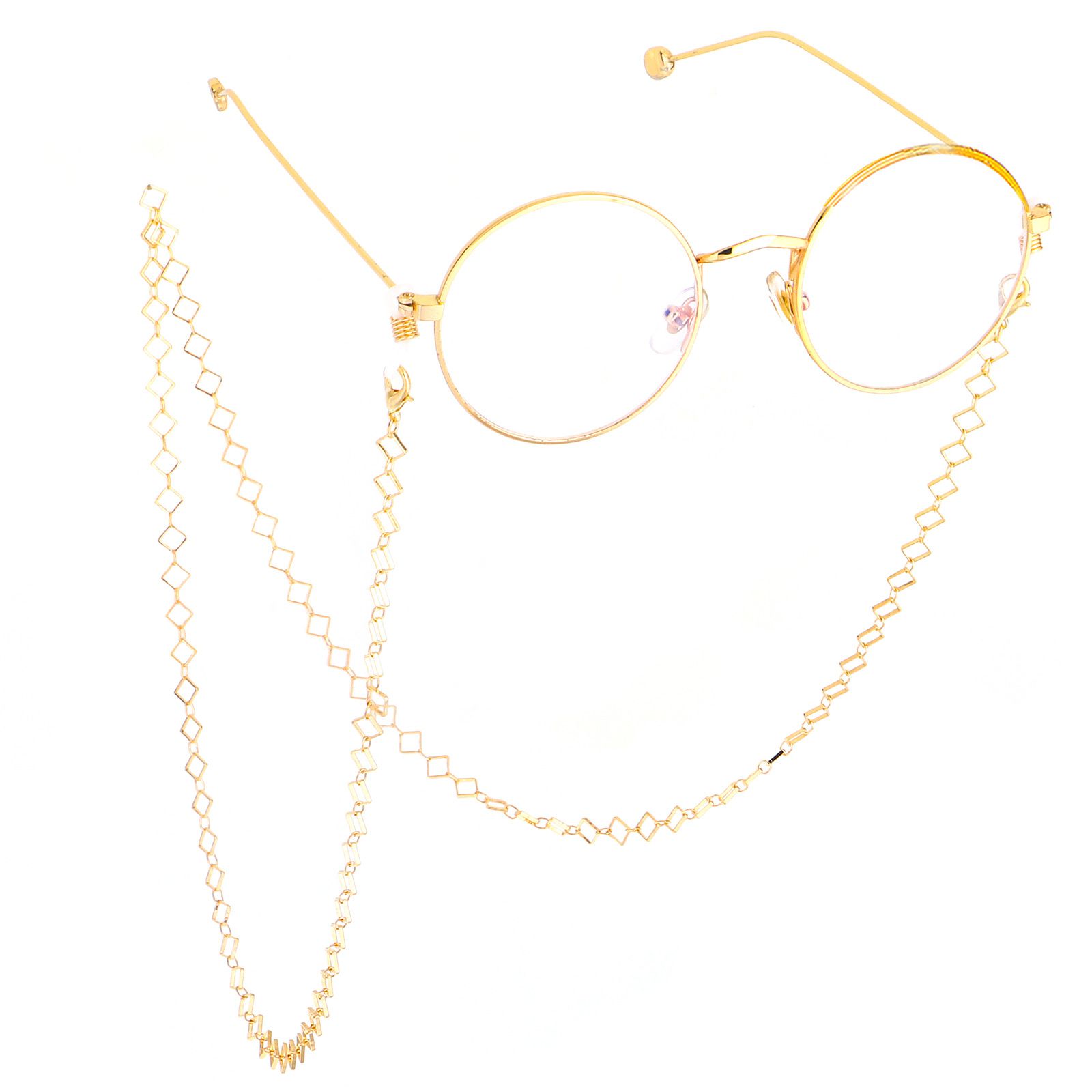 Металлическая нескользящая цепочка золотого цвета, из меди в форме квадратов, для очков и масок GL524