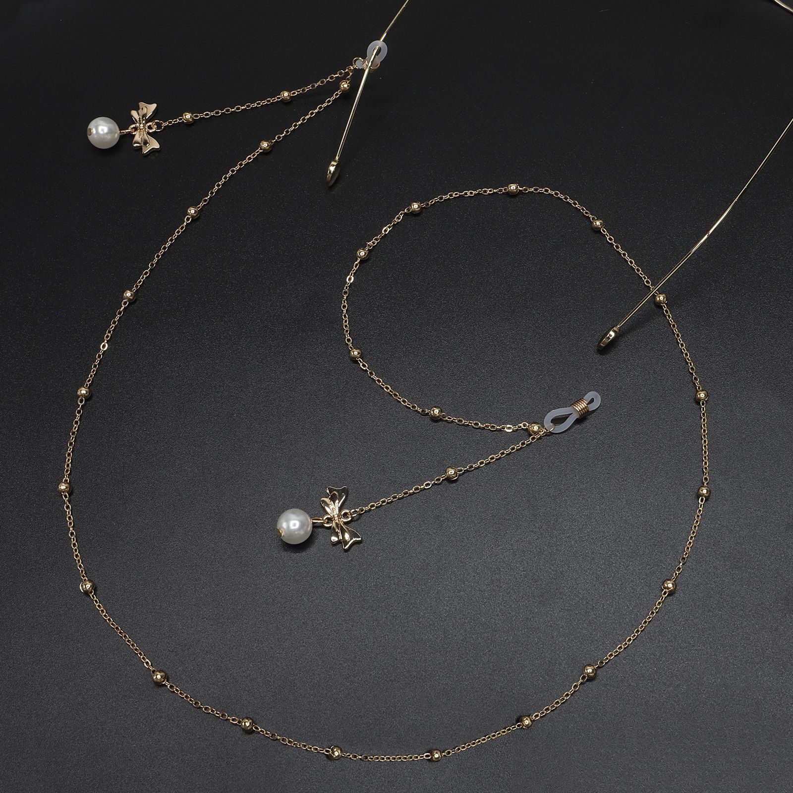 Металлическая нескользящая цепочка золотого цвета, с подвеской бант с жемчужиной и бусинами, для очков и масок GL573