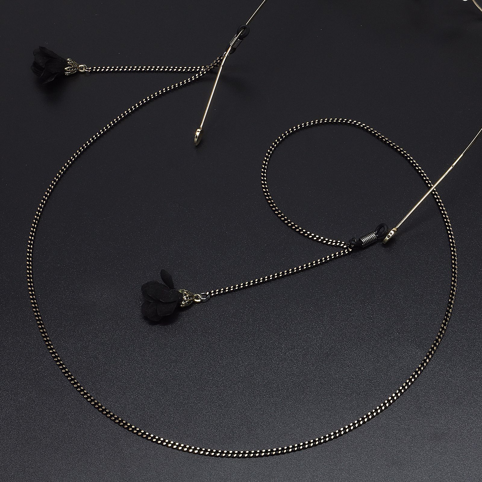 Металлическая нескользящая цепочка черного цвета, с подвеской цветок из ткани, для очков и масок GL597