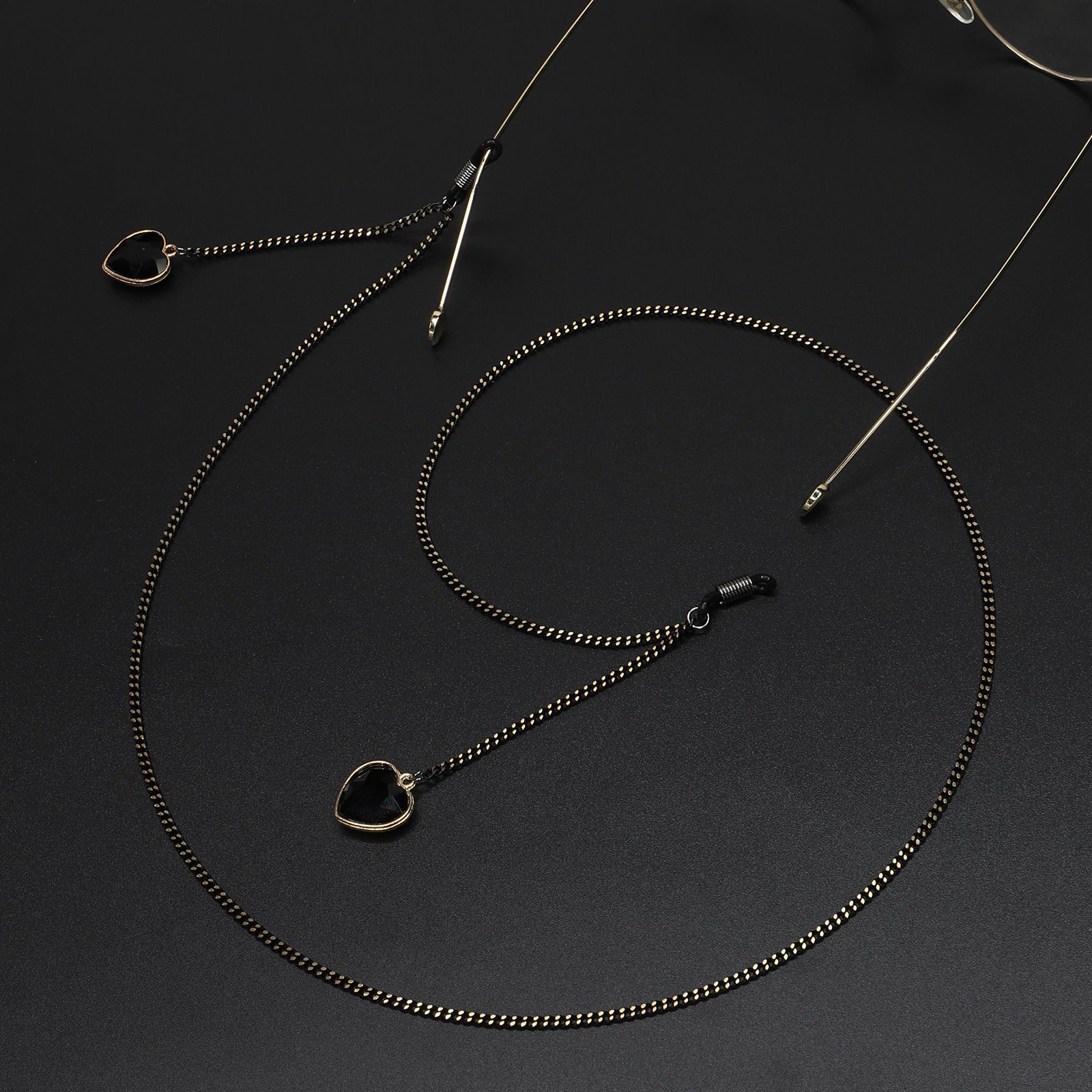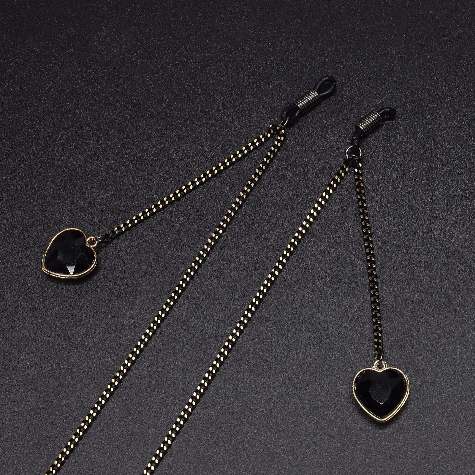 Металлическая нескользящая цепочка черного цвета, с подвеской в виде сердца из кристалла, для очков и масок GL602