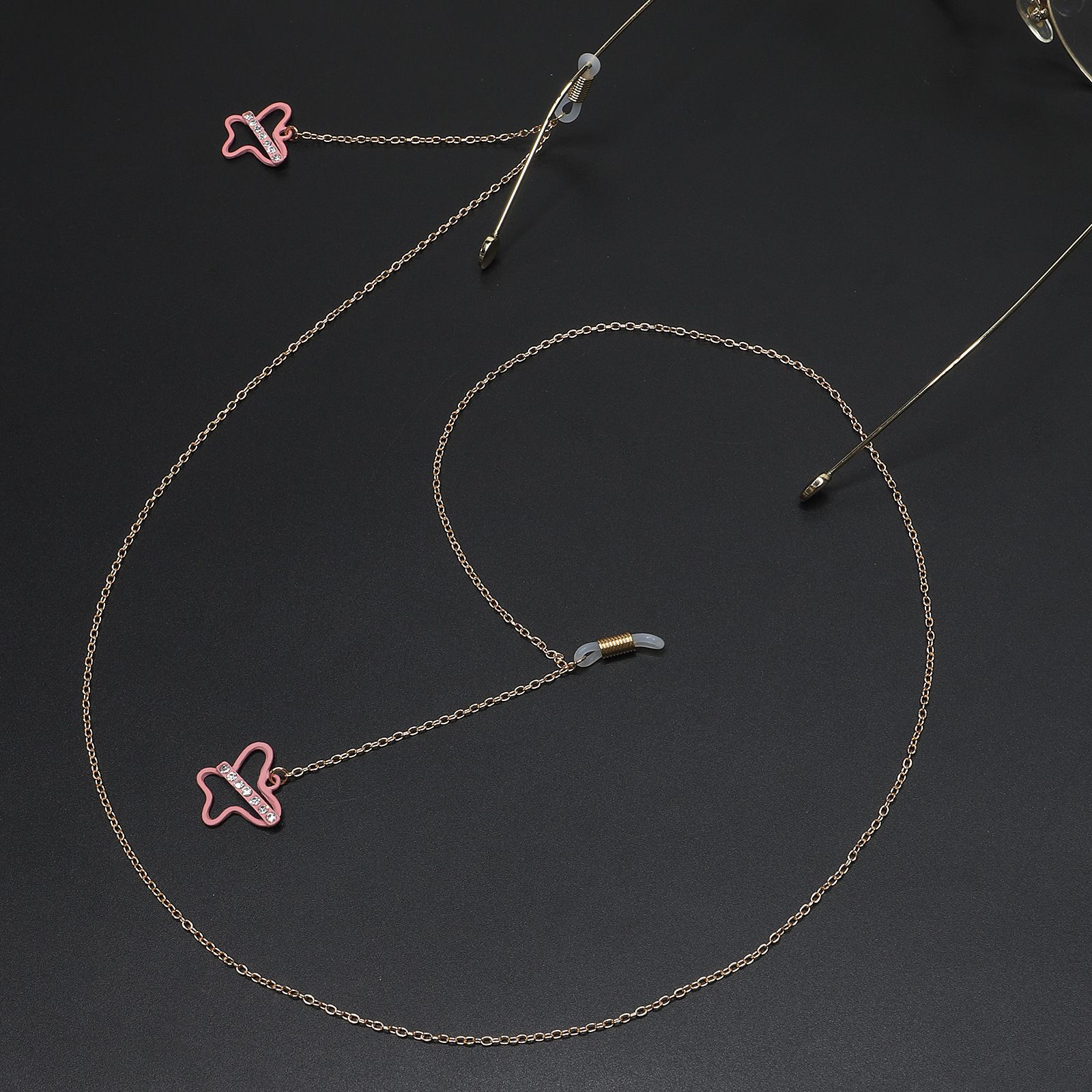 Металлическая нескользящая цепочка золотого цвета, с подвеской розовая бабочка со стразами, для очков и масок GL711