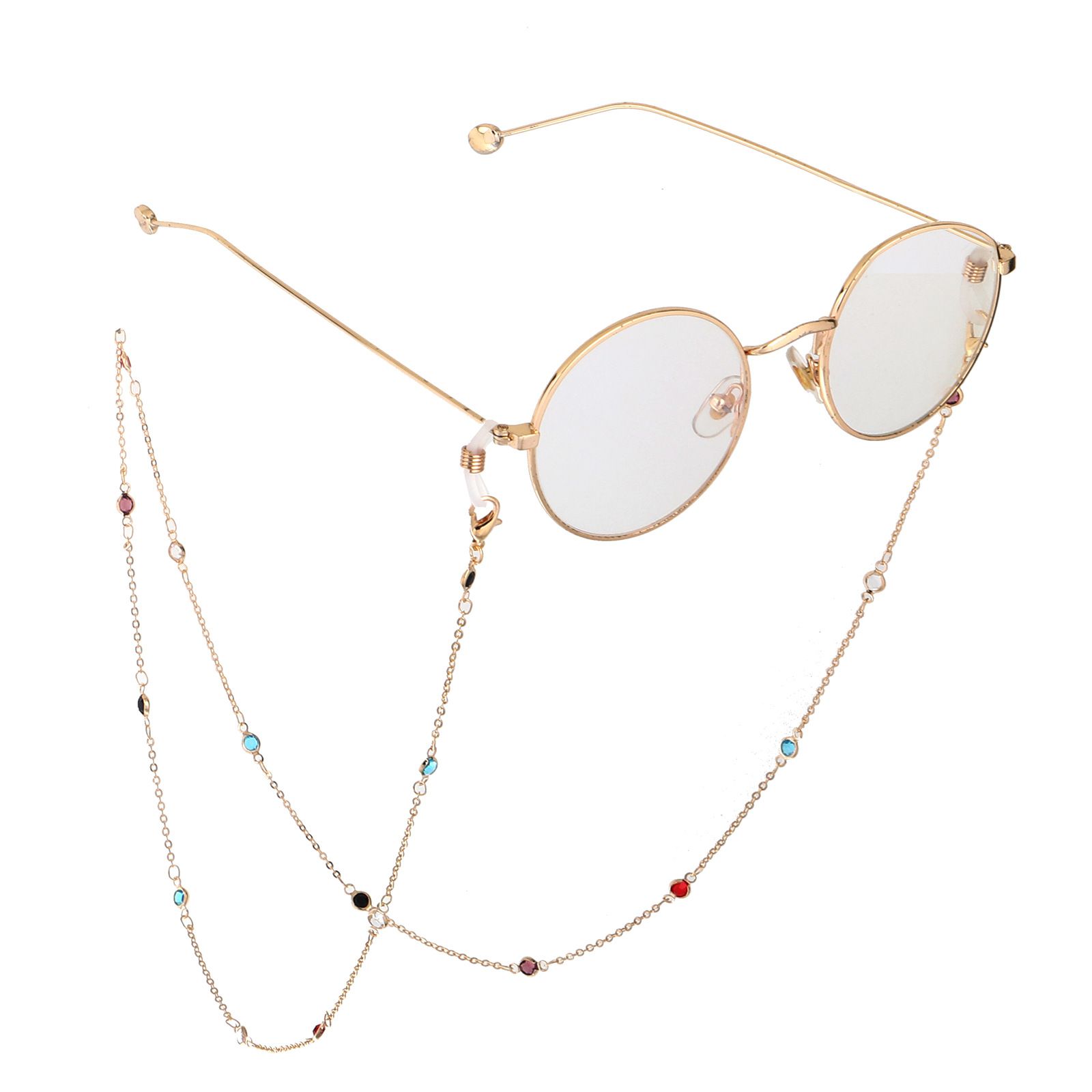 Металлическая нескользящая цепочка золотого цвета, с цветными бусинами, для очков и масок GL749