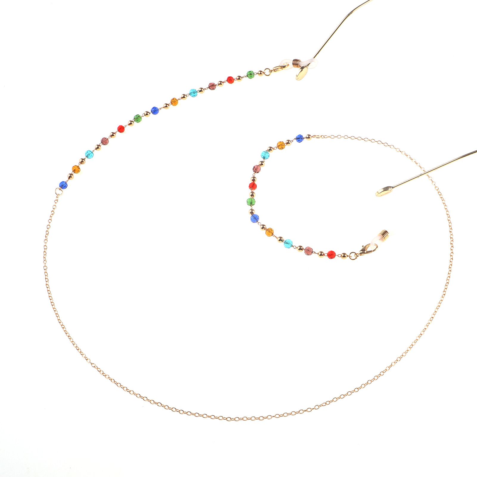 Металлическая нескользящая цепочка золотого цвета, с цветными кристаллами, для очков и масок GL849