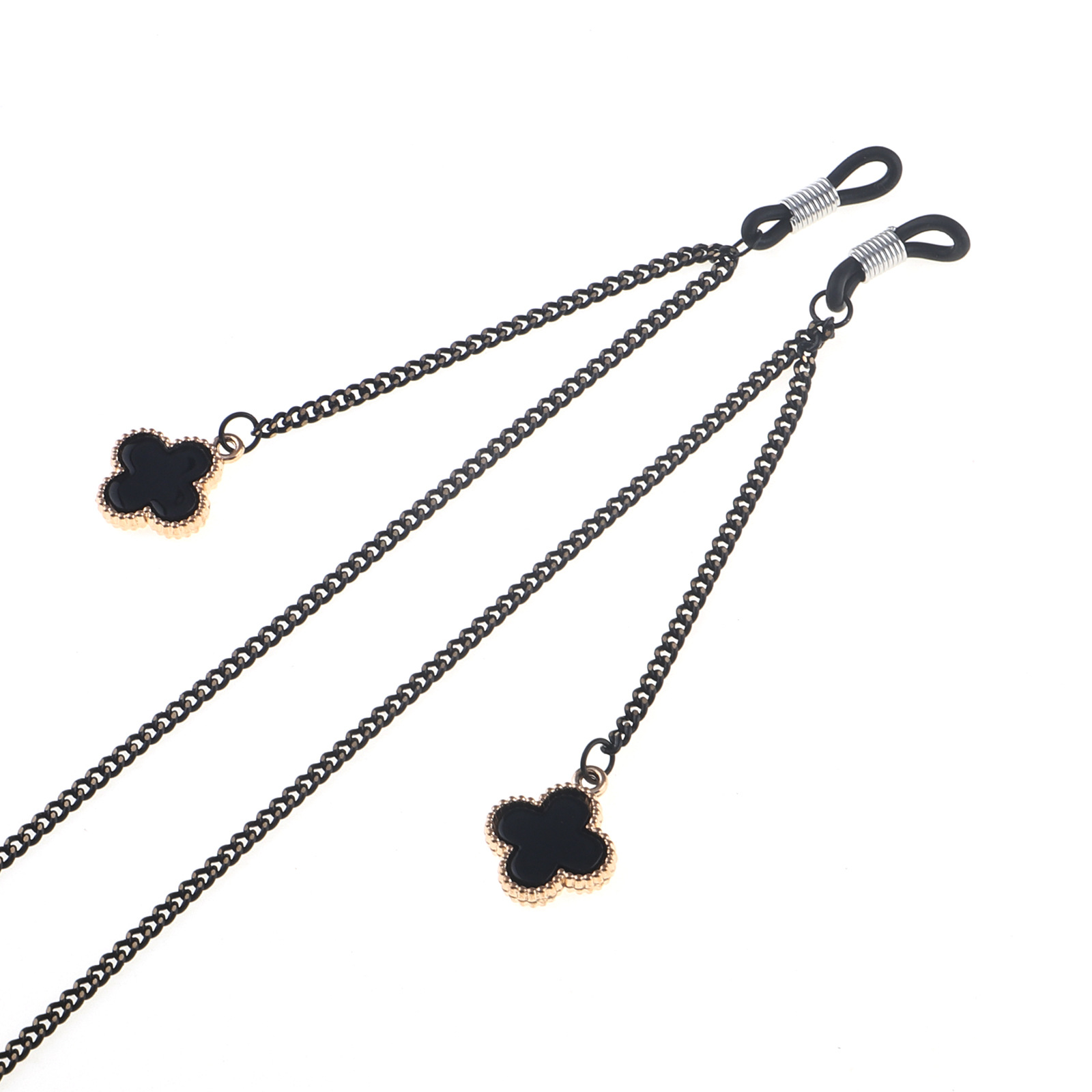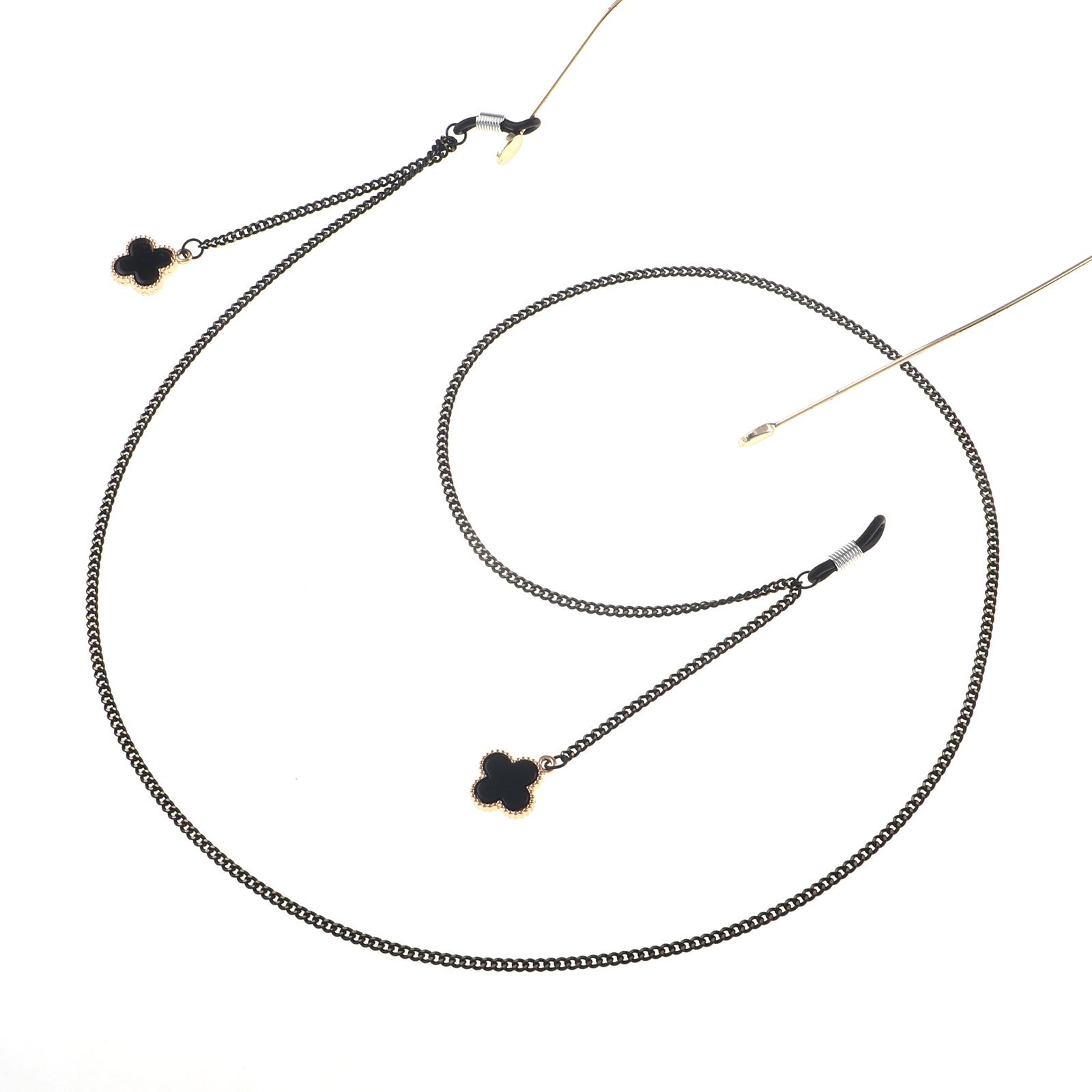 Металлическая нескользящая цепочка черного цвета, с подвеской в виде цветка клевера, для очков и масок GL854