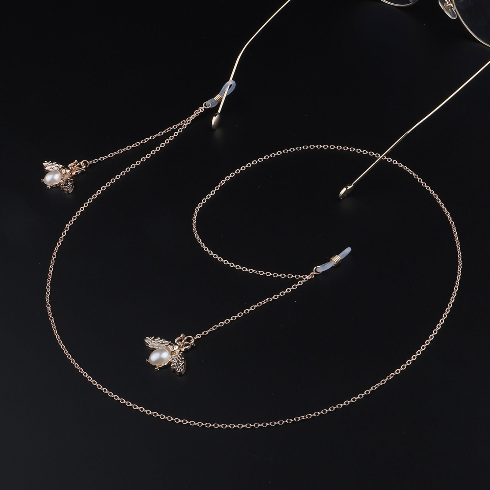 Металлическая нескользящая цепочка золотого цвета, подвеска в виде пчелы с жемчугом, для очков и масок GL930