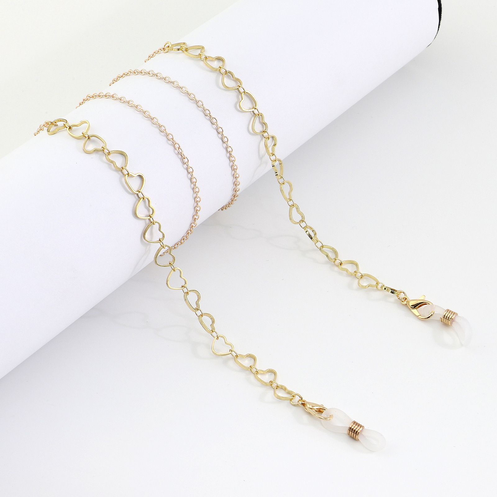 Металлическая нескользящая цепочка золотого цвета, в форме полых сердец, для очков и масок GL999