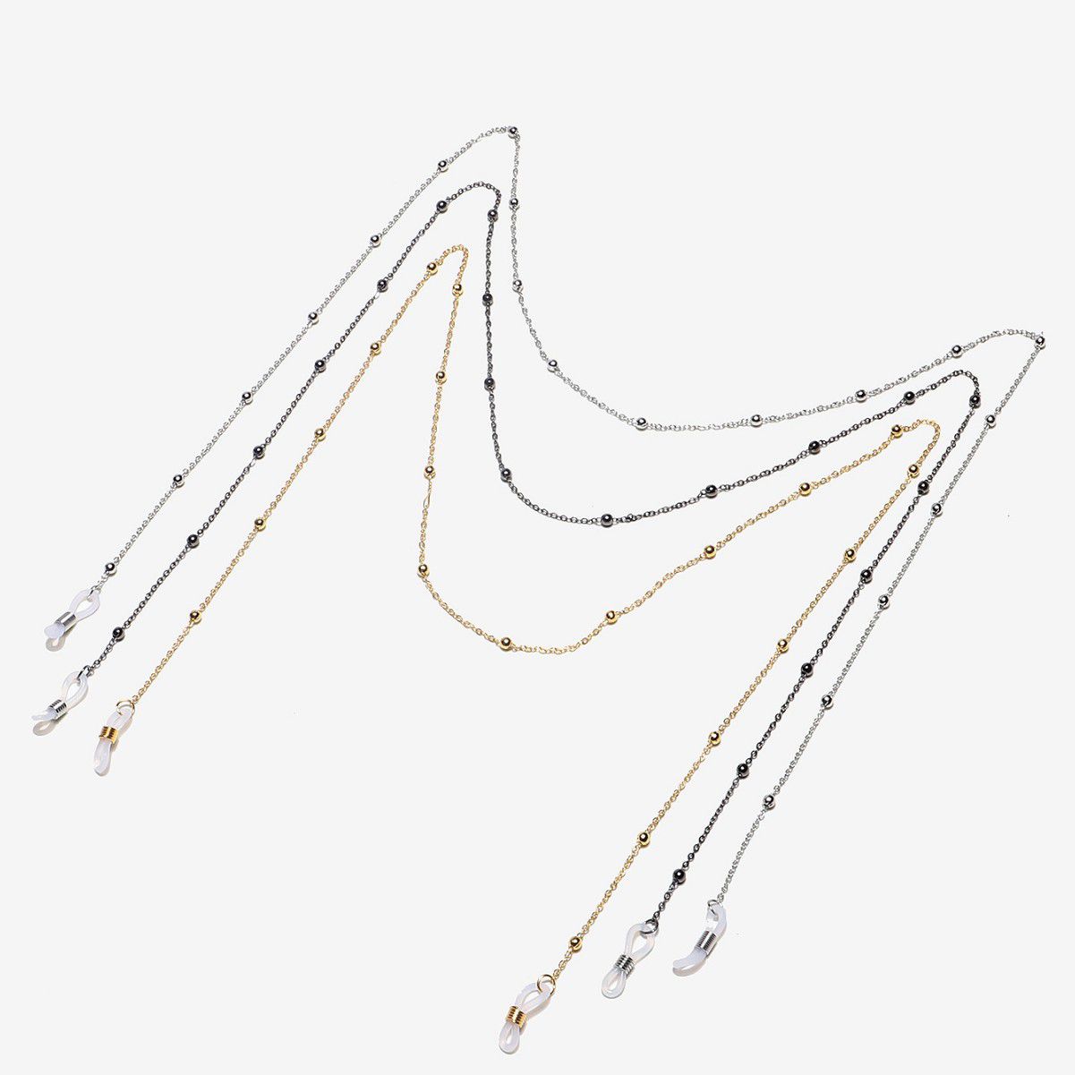 Металлическая нескользящая цепочка, комплект из 3-х предметов с бусинами, для очков и масок GM020