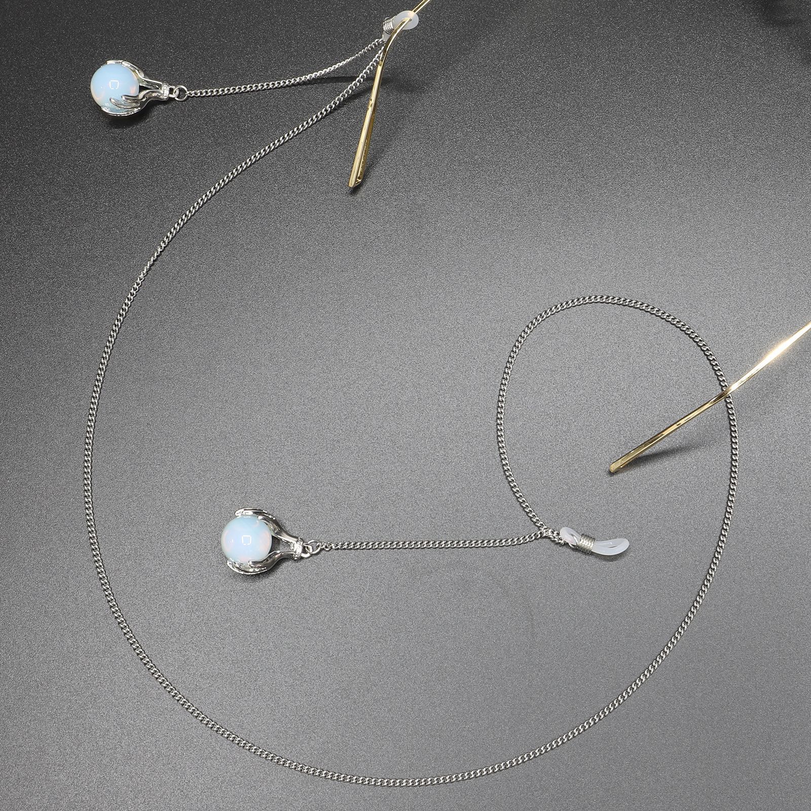 Металлическая нескользящая цепочка с серебрянным покрытием, с кулоном из опала, для очков и масок GS022