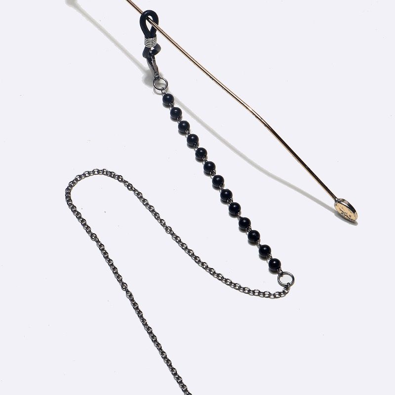 Black-colored metal non-slip chain, with black pearls, for glasses and masks GL1397