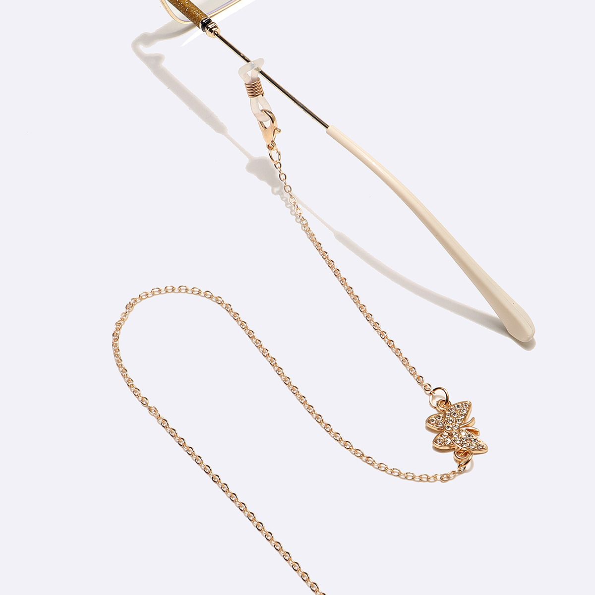 Gold-colored metal non-slip chain, with butterfly with rhinestines, for glasses and masks GL1456