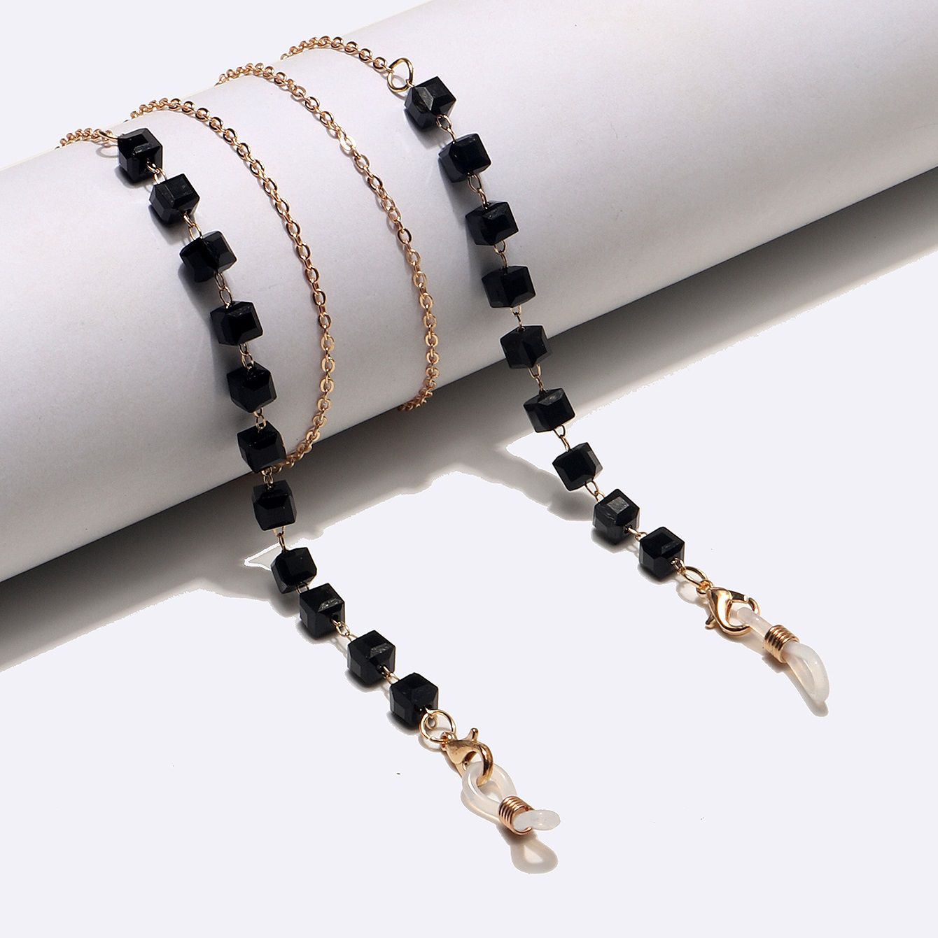 Gold-colored metal non-slip chain, with square black crystal, for glasses and masks GL1480