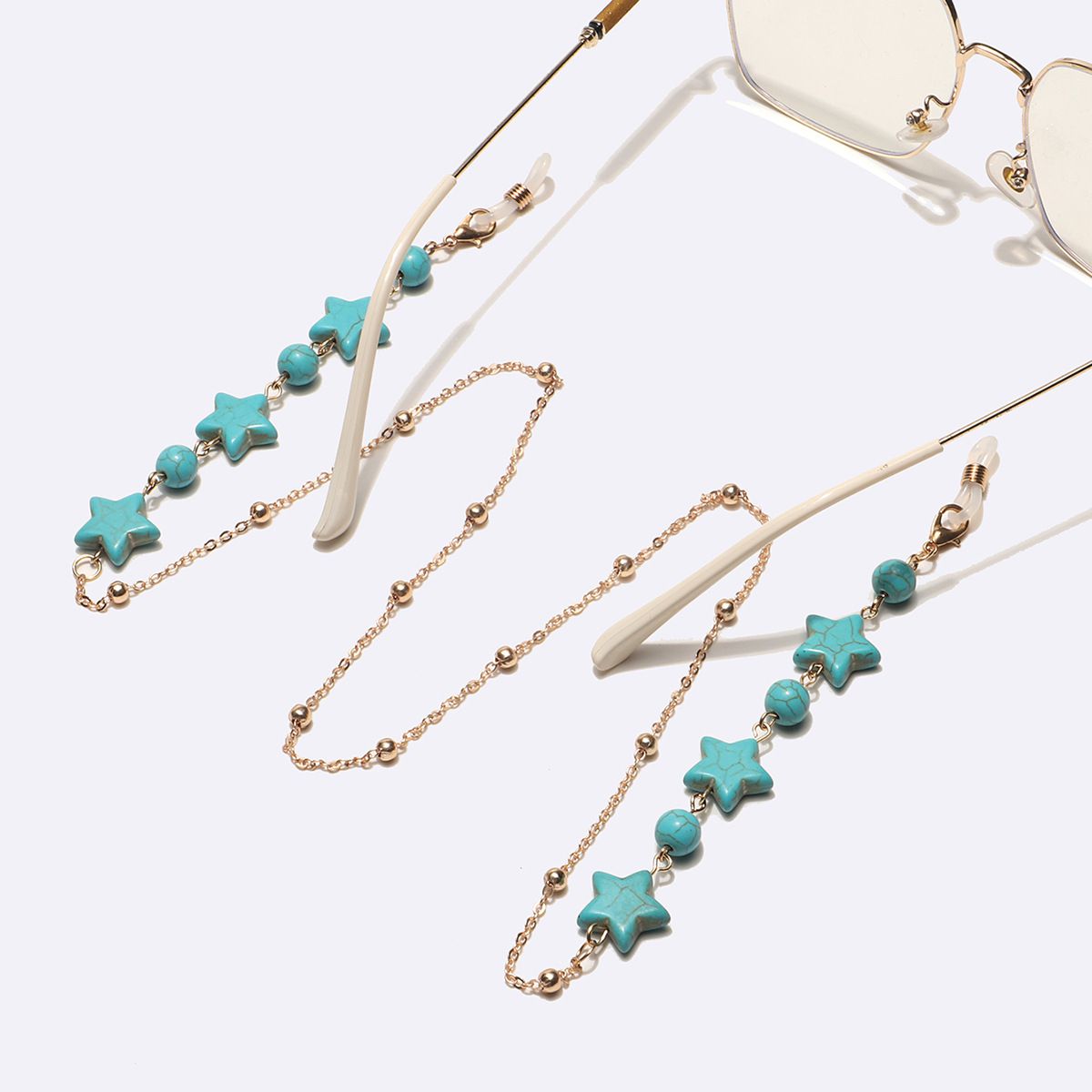 Gold-colored metal non-slip chain, with turquoise stars and beads, for glasses and masks GL1740