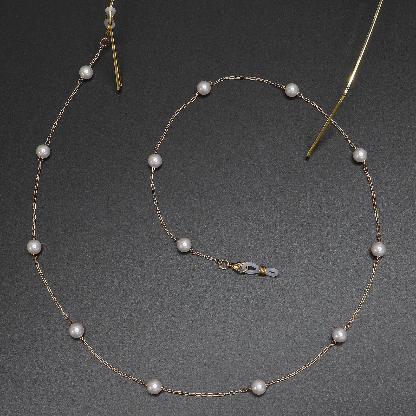 Gold-colored metal non-slip chain, with pearl 8mm, for glasses and masks GL382