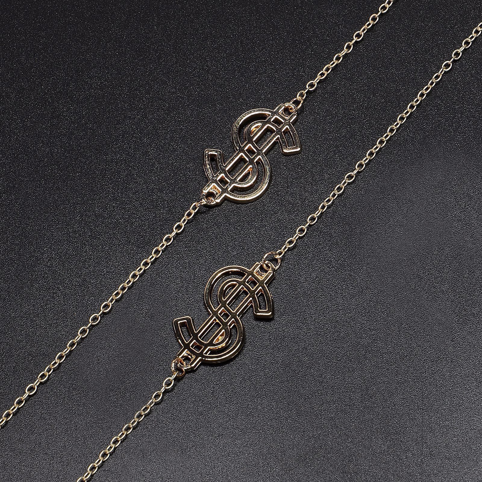 Gold-colored metal non-slip chain, with dollar sign, for glasses and masks GL552