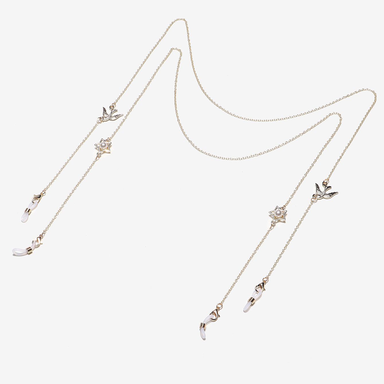 Metal non-slip chain set 2-piece, gold with swallow and star, for glasses and masks GM022