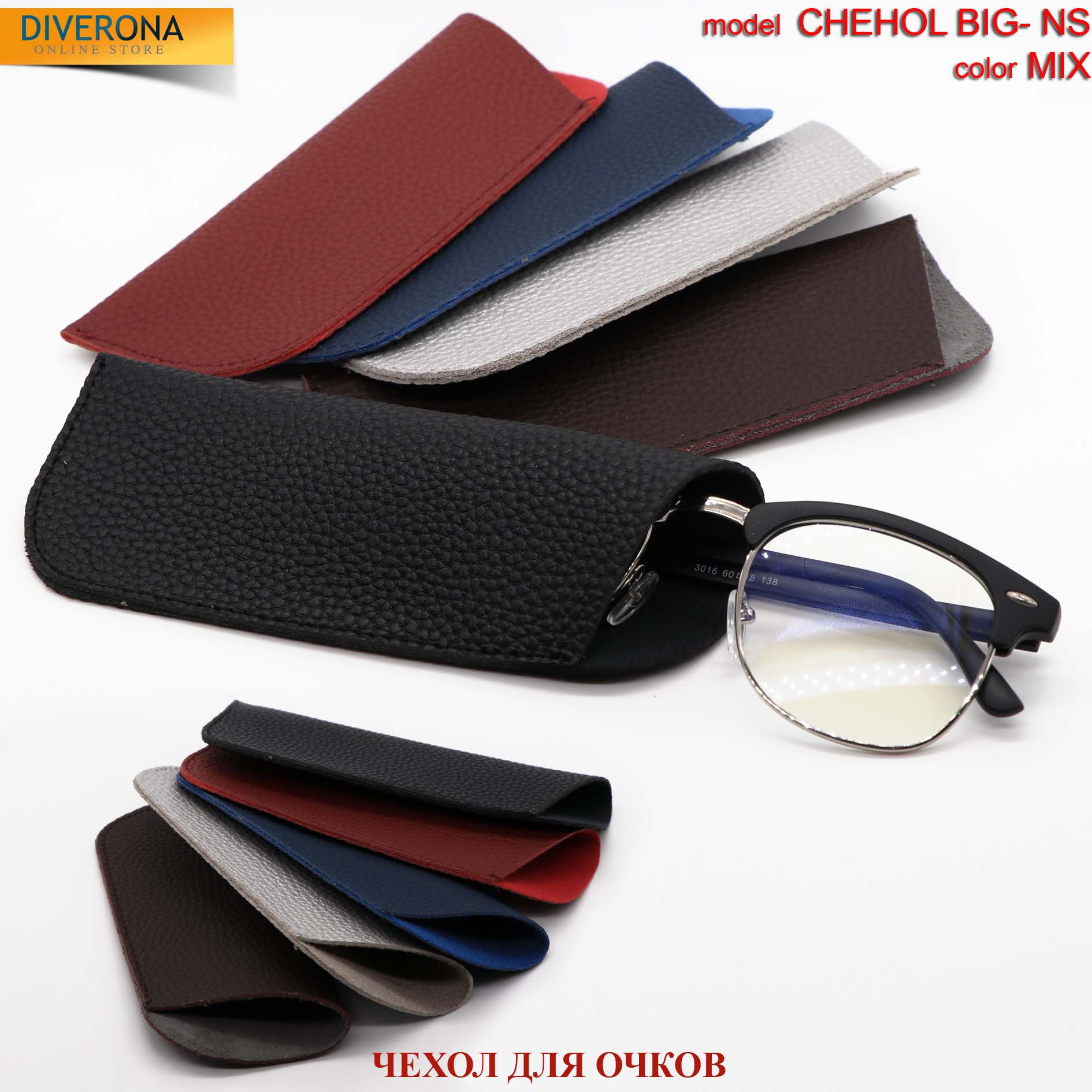 Чехол кожзам для очков, премиум класс качества CHEHOL BIG-NS, 16 * 6,5 см