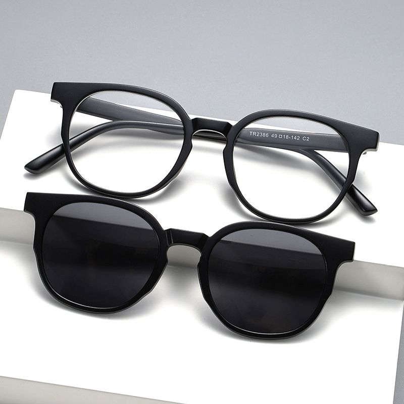 Clip-on frames are a universal solution for people who need to constantly change their glasses when moving from indoors to outdoors and back. The clip-on is a removable element with dark lenses that is easily attached to the main frame using magnets or special fasteners. This allows you to quickly convert regular glasses into sunglasses, providing comfort and protection in any conditions.