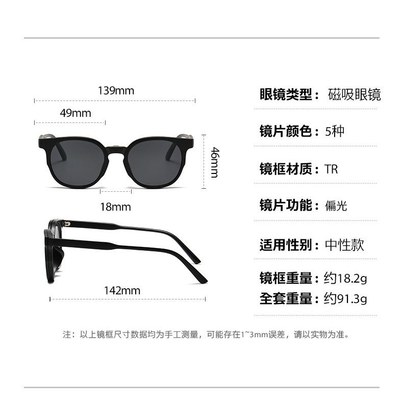TR90/PC plastic frame + 5 polarized sun protection magnet clip-on set + leather bag El Dorado EL2382
