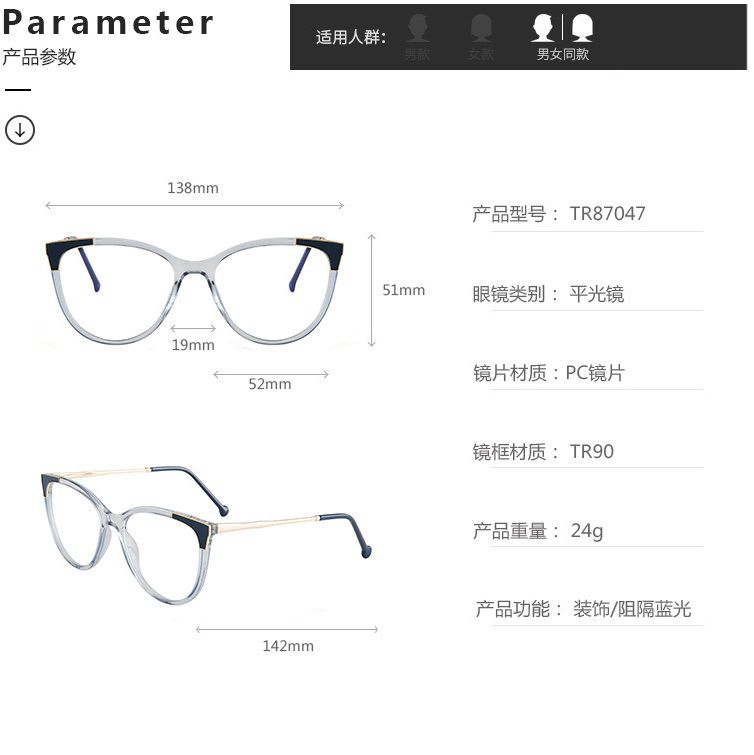 TR90 plastic frame or glasses with blue light protection, with spring hinges FA87047