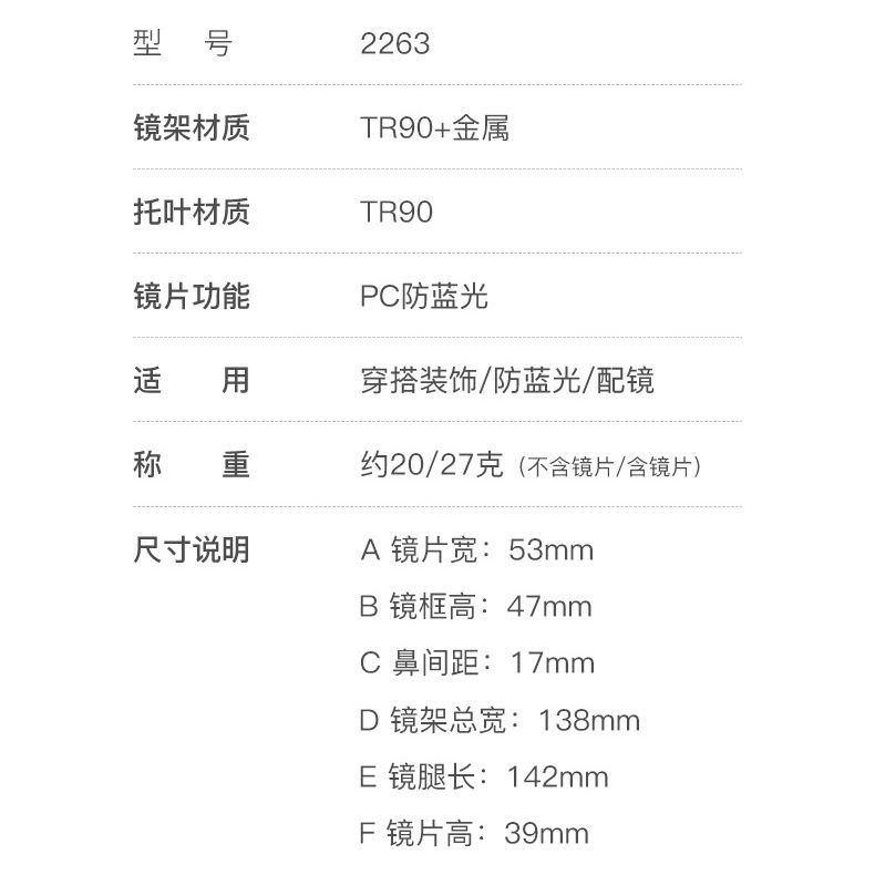 - Frame material: TR90 plastic