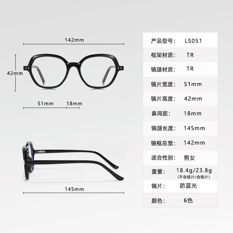 - Frame material: TR90 plastic