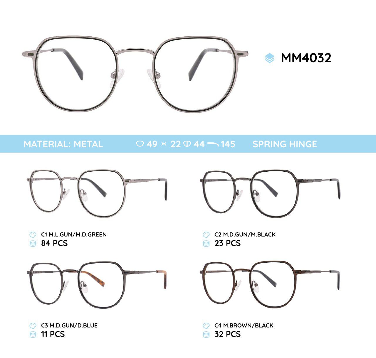 Metal frames for glasses. The material is stainless steel. The frames keep their shape well, at the same time they are flexible. High quality. Frames have good tactile properties and resistant to damage, they are lightweight and hypoallergenic. Many of models are decorated with rhinestones, have elegant temples and flex hinges. Fashionable design. This frames collection of high quality, passes piece control. In our store goods of this category have a low price for wholesale. European Conformity.