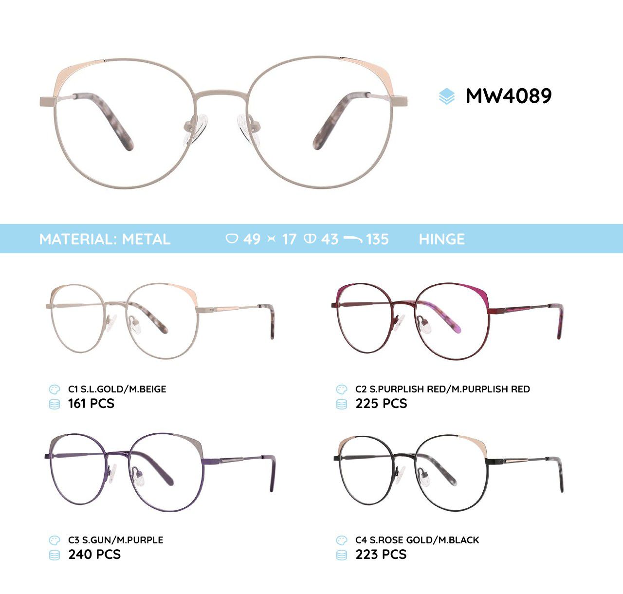 Metal women's frame for glasses MW4089