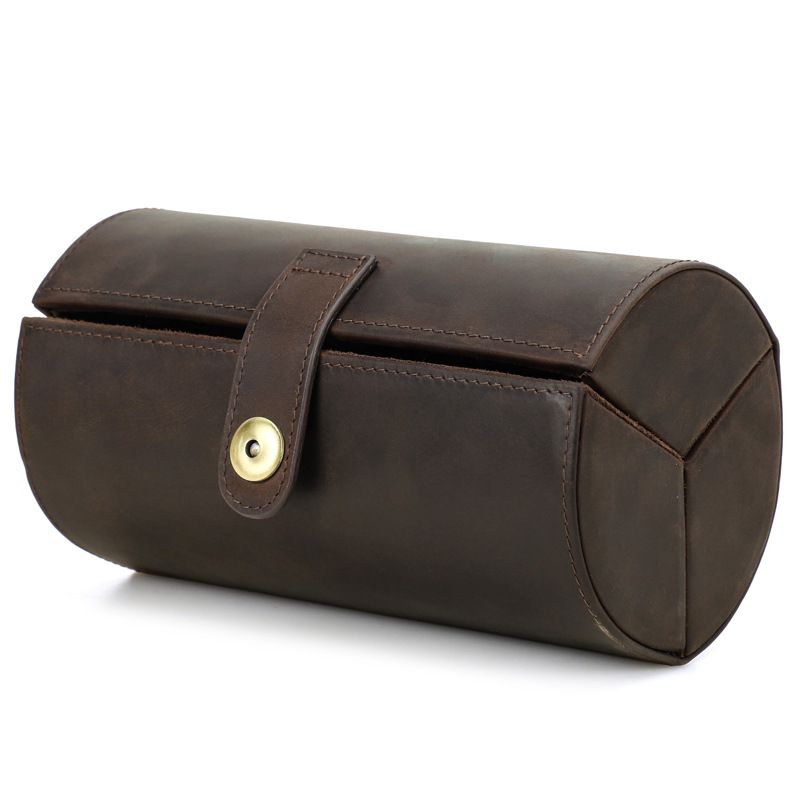 Футляр для очков и солнцезащитных очков из натуральной кожи цилиндрический на 3 отсека CF4008